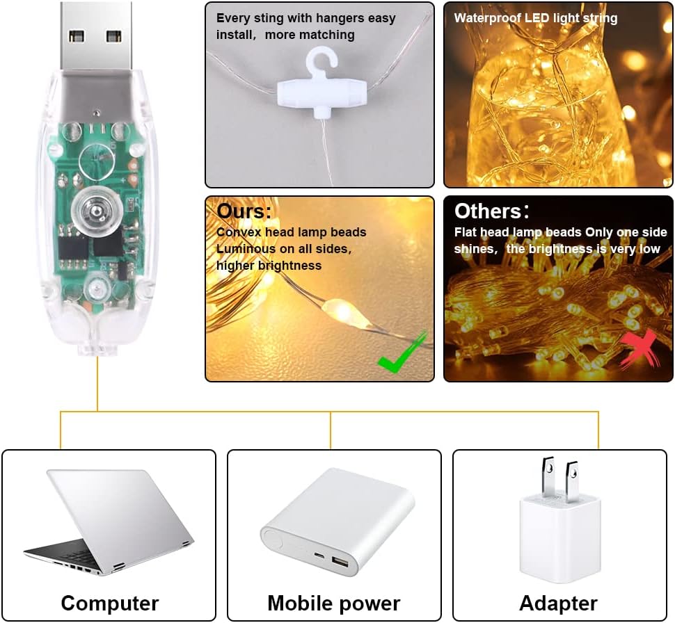 • 🌟【USB Powered】The fairy curtain light is powered by USB, this curtain light has a USB charging port. Curtain string lights can be plugged into a USB charger, making them suitable for powering in more places, even while camping or grilling. Or powered by a mobile power supply, laptop, mobile phone adapter, etc.