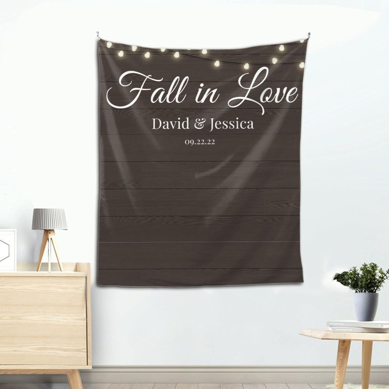 • ❤Add Your Own Design: Fall in Love Backdrop - Customized your own wedding quote banner with your names and your big date. Click 'Customize Now' to start your design, then you will get a unique and beautiful tapestry for your big day! Some customers like to change the fonts, if you also need that, you can leave a message or send us the font name or font photo directly, we will try to find the same font or similar ones.