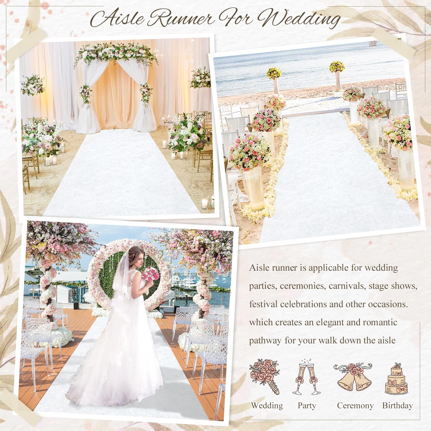 • ❀Widely Application - White Wedding Walkway: Party carpet area rug perfect for indoor and outdoor aisle decorations. Carpet aisle runner are suitable for decorating church, beach, hall, wedding venue and more. Velvet cloth aisle rug can be used for various occasions such as wedding, ceremony, party, birthday, gathering, graduaton, carnival, movie, anniversary, bridal shower, baby shower and more, creating romantic and elegant atmosphere.