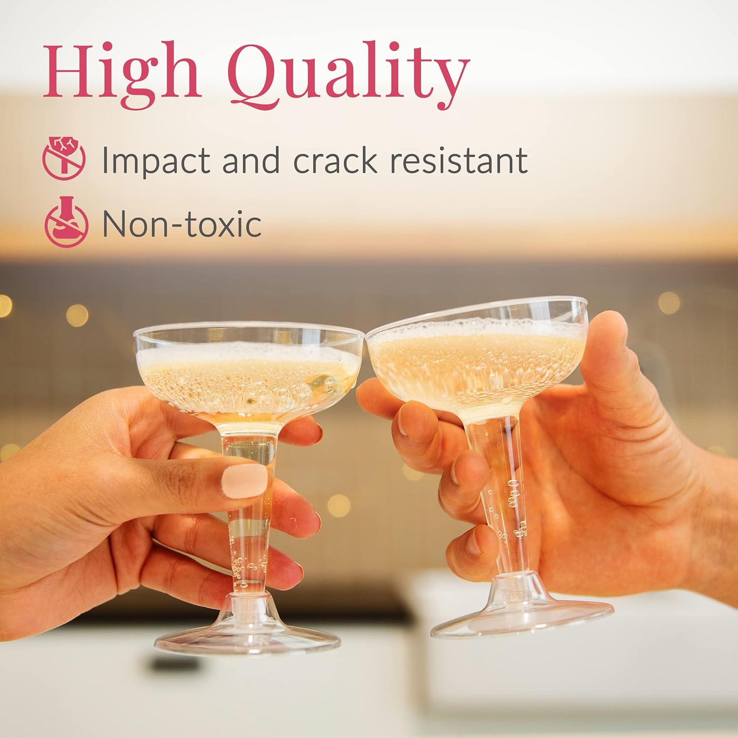 Prestee 24 Clear Plastic Coupe Glasses 4oz - Disposable Plastic Cocktail Cups, Martini Glasses, Margarita Glass, Champagne Glass for Parties, Cinco de Mayo, Taco Party, Weddings Decorations