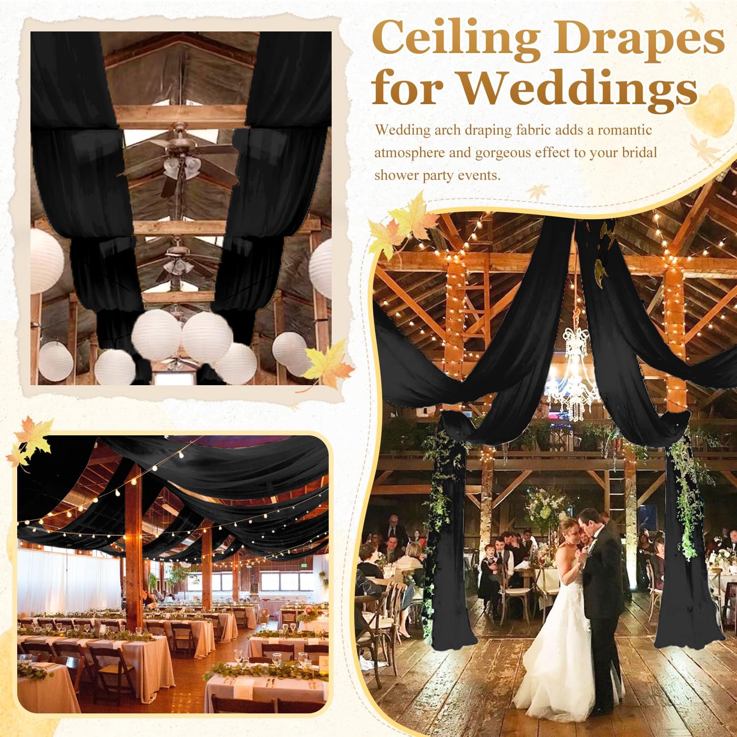 MODFUNS Black Ceiling Drapes for Weddings 2 Panels 5x20 FT Chiffon Wedding Arch Drapes Sheer Curtains Ceiling Decorations Tulle Drapery for Ceremony Archway Draping Fabric for Hallway Tent Stage Party