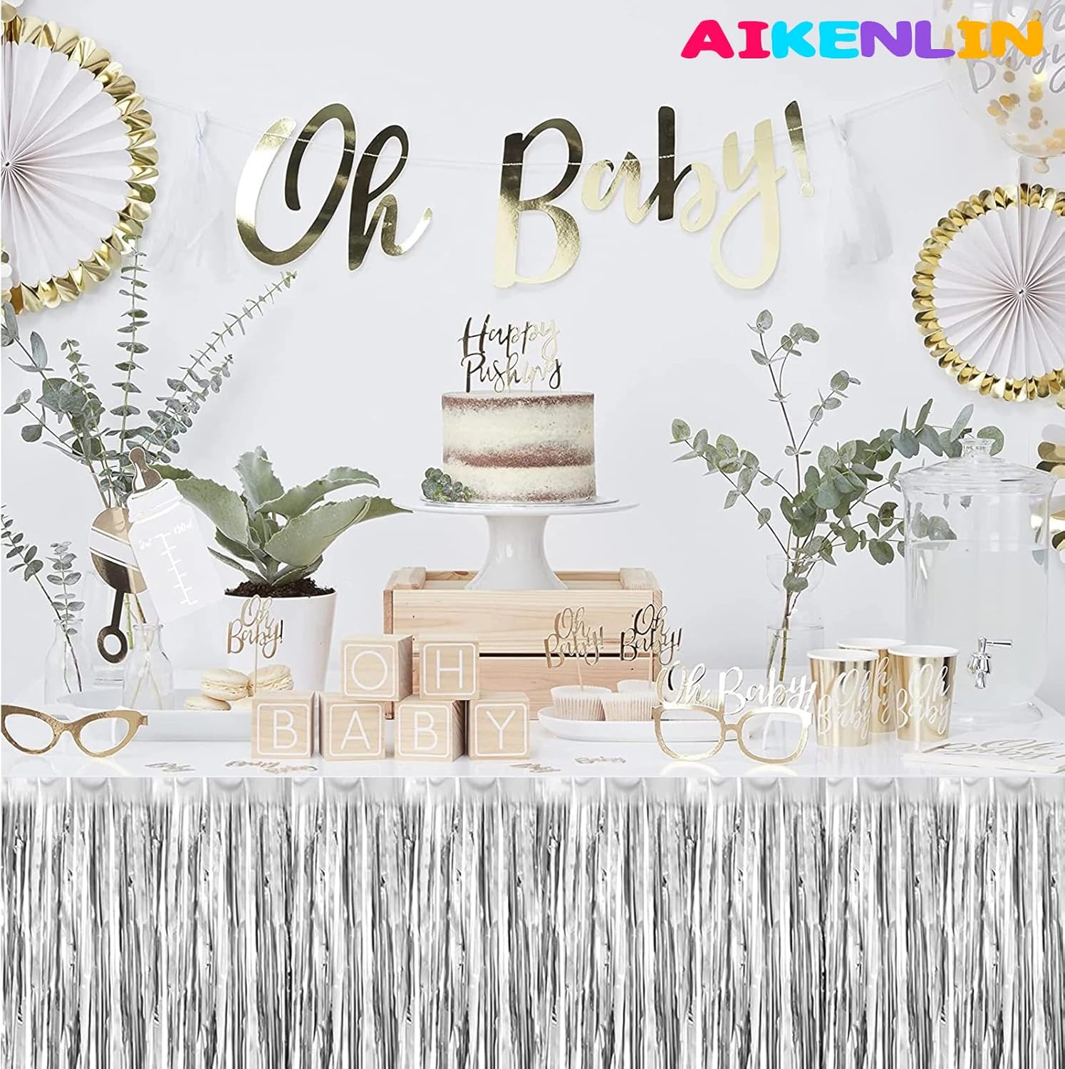 • 【Package Includes】6pcs/set metallic fringe table skirts / shiny tassel banner, beautiful and shiny, provide you with great decoration effects, Each pack of table skirt measures 29x108 inches. Each one will be 9 Ft long, 6 pack will cover 54 FT length of tables.