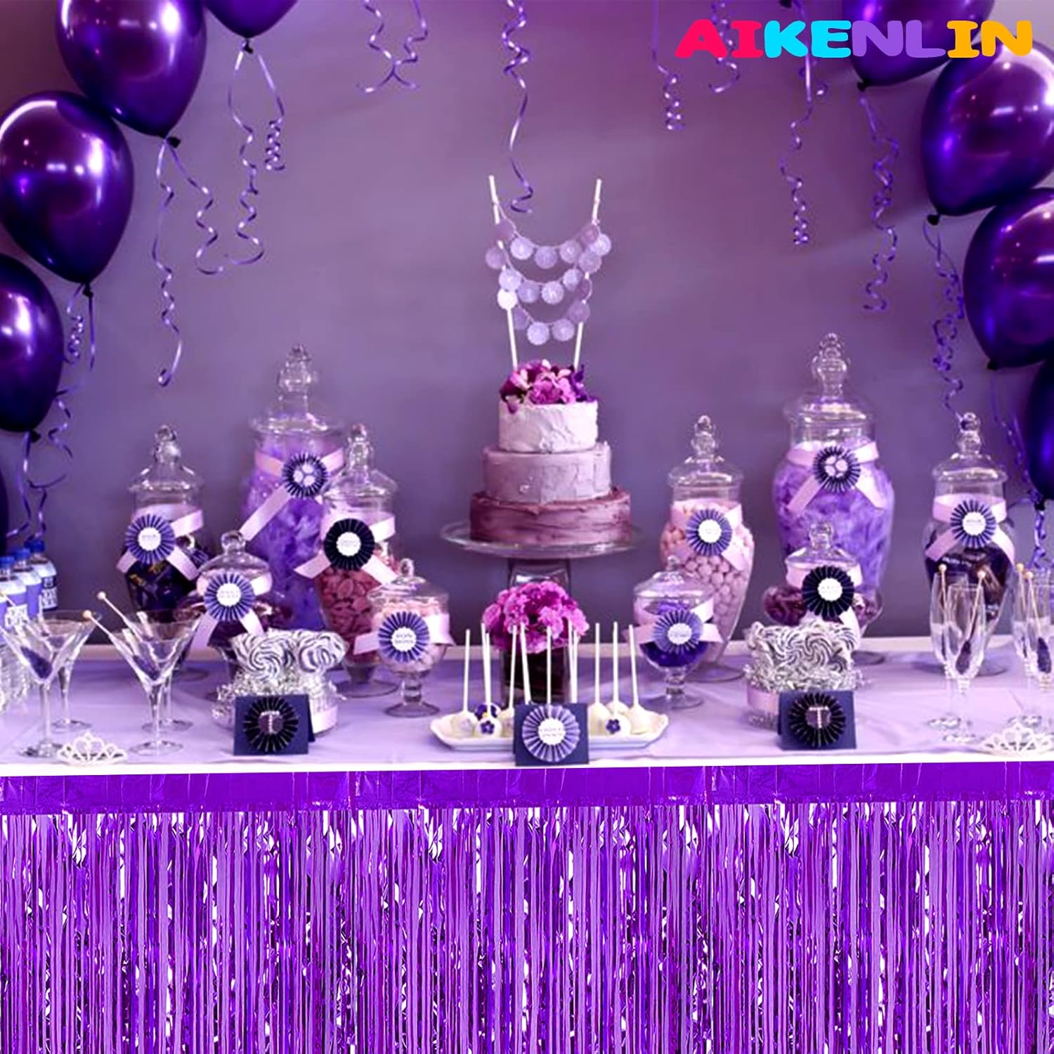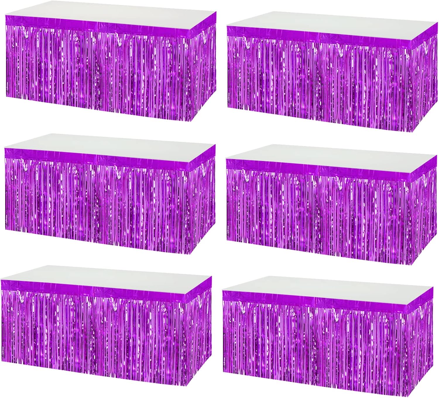 6 Pack 29x108 Inch Metallic Foil Fringe Tinsel Table Skirts Banner for Rectangle Tables Streamer Garland Curtains Backdrop for Wedding, Birthday, Parade Floats, Halloween Party Decoration(Purple)