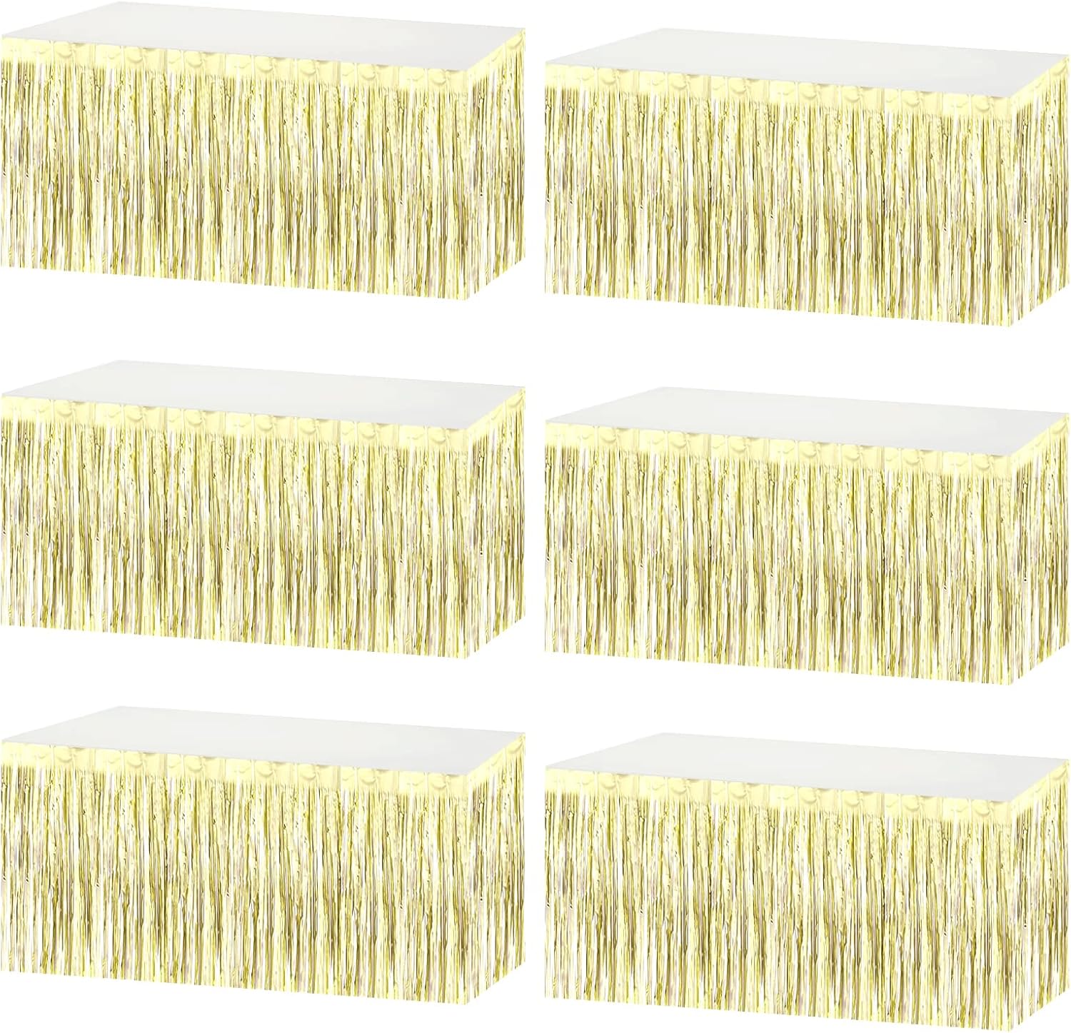 6 Pack 29x108 Inch Metallic Foil Fringe Tinsel Table Skirts Banner for Rectangle Tables Streamer Garland Backdrop for Wedding, Birthday, Parade Floats, Christmas Party Decoration(Light Gold)