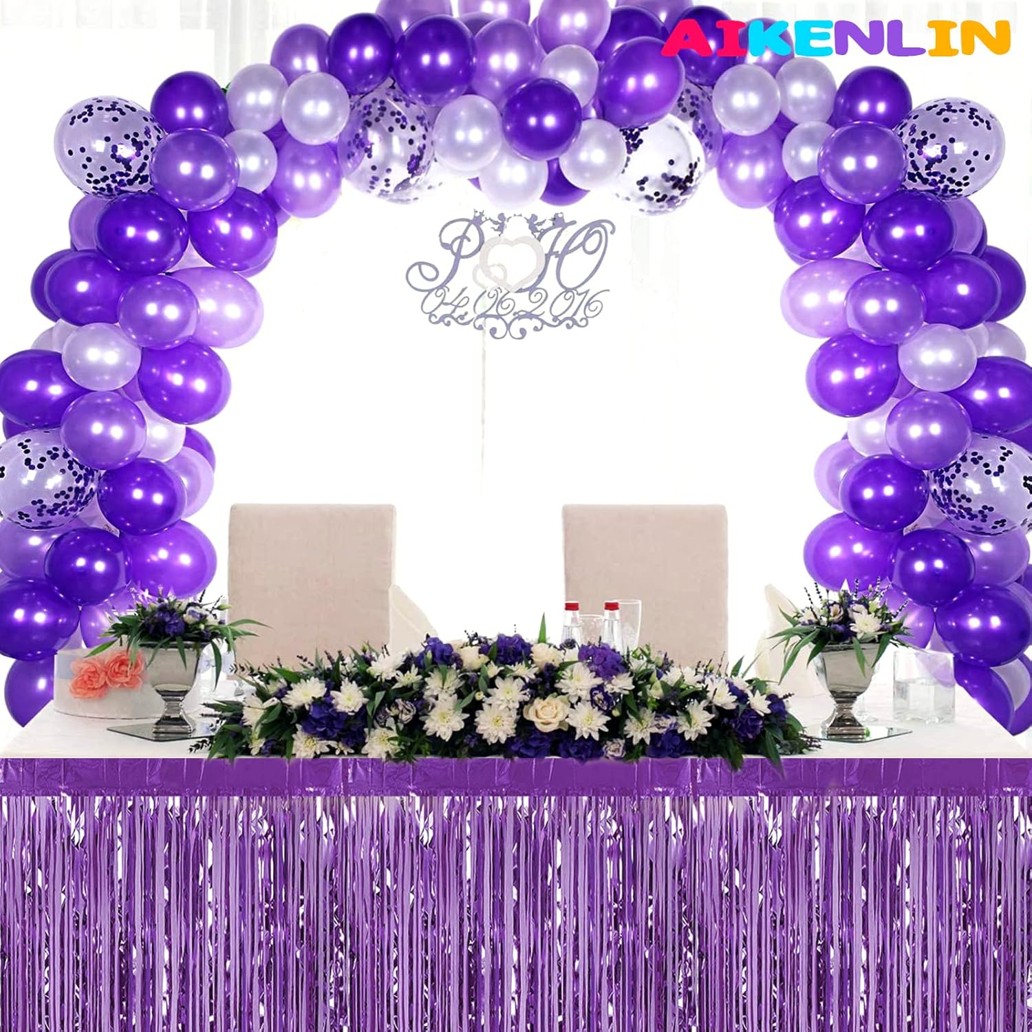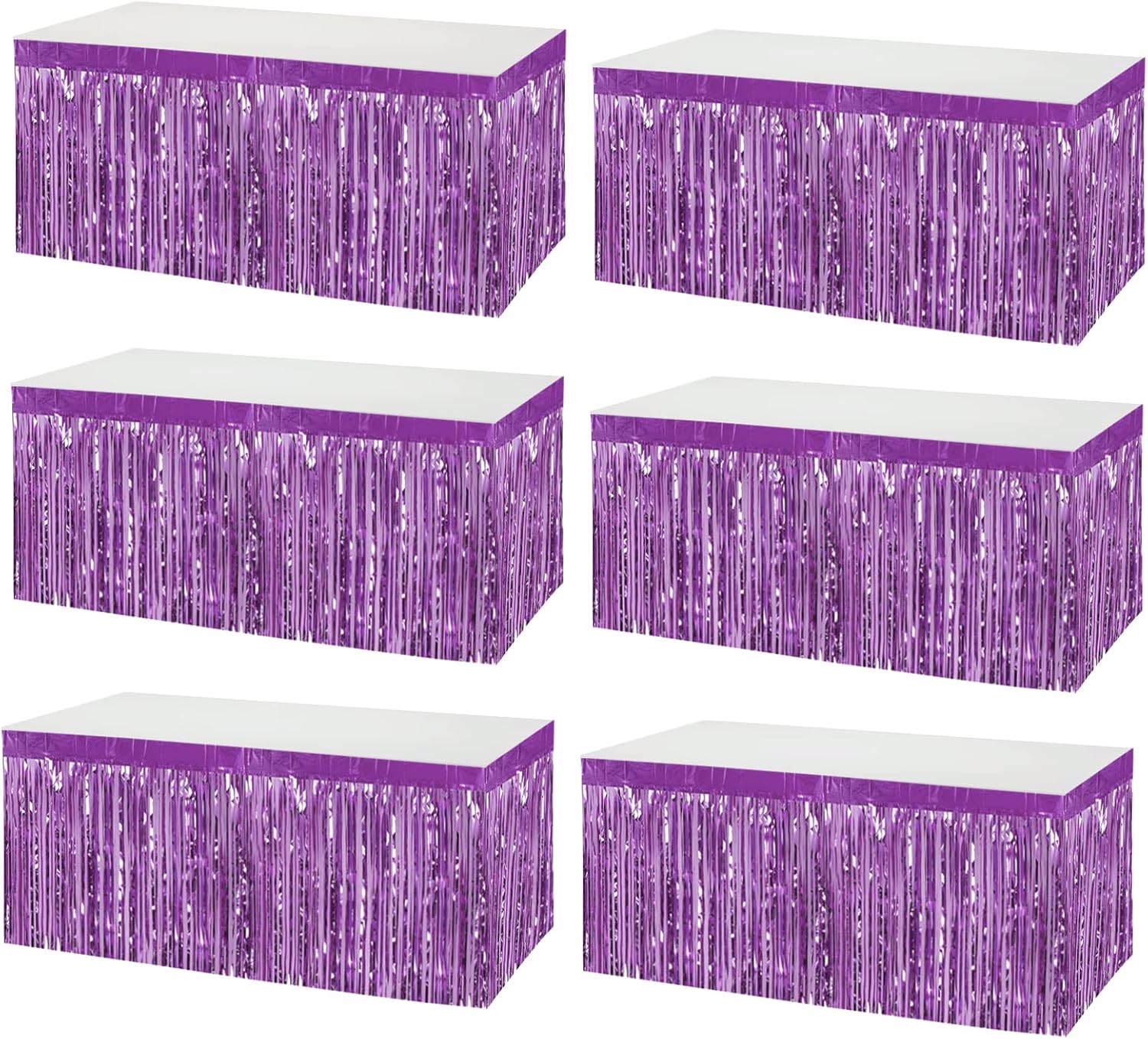 6 Pack 29x108 Inch Metallic Foil Fringe Tinsel Table Skirts Banner for Rectangle Tables Streamer Garland Backdrop for Wedding, Birthday, Parade Floats, Christmas Party Decoration(Light Purple)