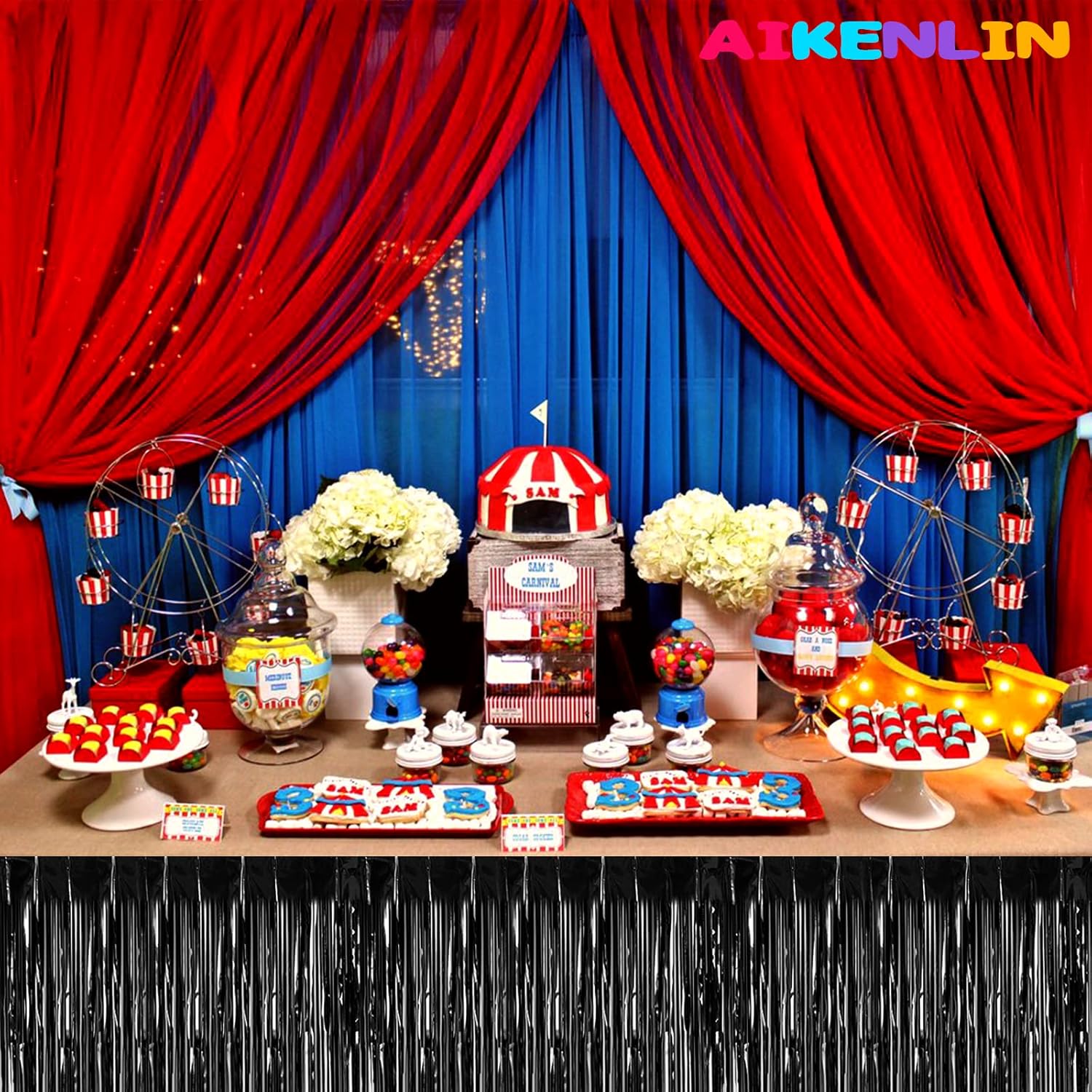 • 【Package Includes】6pcs/set metallic fringe table skirts / shiny tassel banner, beautiful and shiny, provide you with great decoration effects, Each pack of table skirt measures 29x108 inches. Each one will be 9 Ft long, 6 pack will cover 54 FT length of tables.
