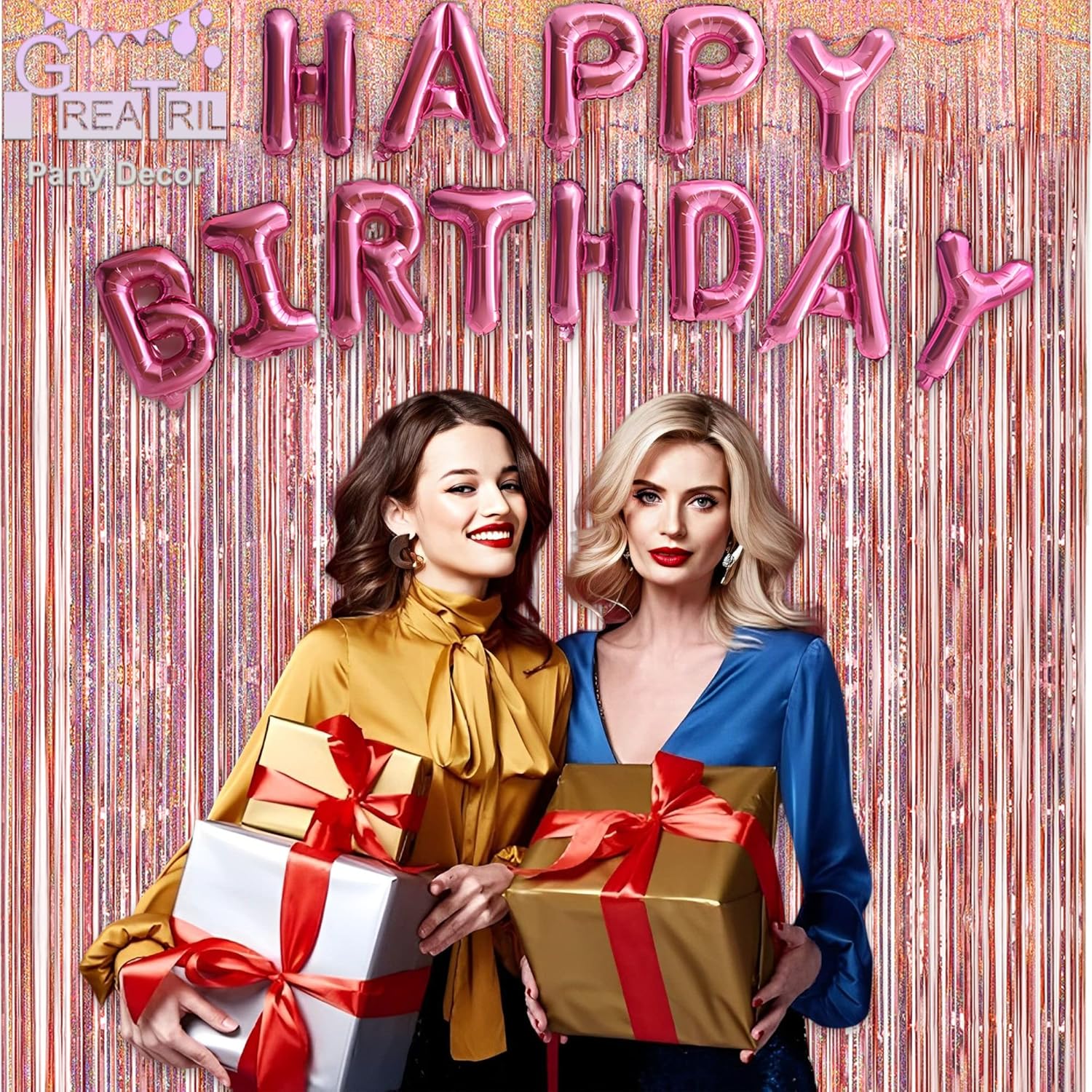 • Tips: You can match other decorations, such as rose gold foil fringe curtains with rose gold red tinsel curtain, rose gold banner or happy birthdays banner, etc. We believe this combination will definitely create a very beautiful party.