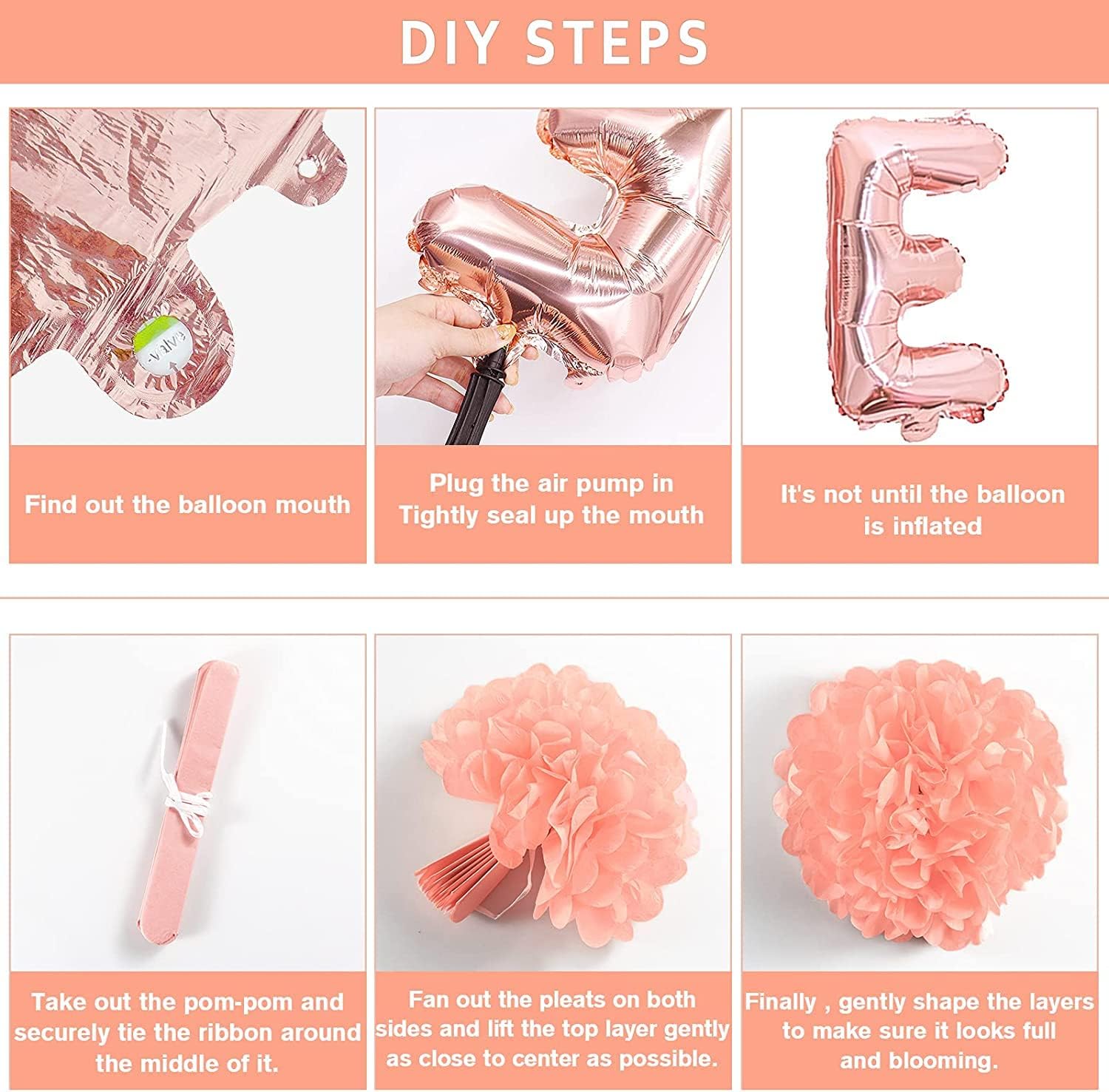 • Easy to Assemble:Rose gold bachelorette party decor set is easy to set up that something is pre-strung.Glittering rose gold banners, paper tassels with a nice and elegant hanging feeling, and paper flower balls in 3 colors, great to create a special atmosphere for your party.