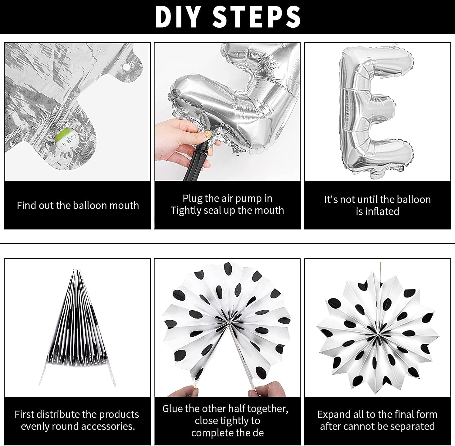 • Included Components : Banner, Balloons, Swirls, Paper Fans, Silver Ribbon, Foil Balloon