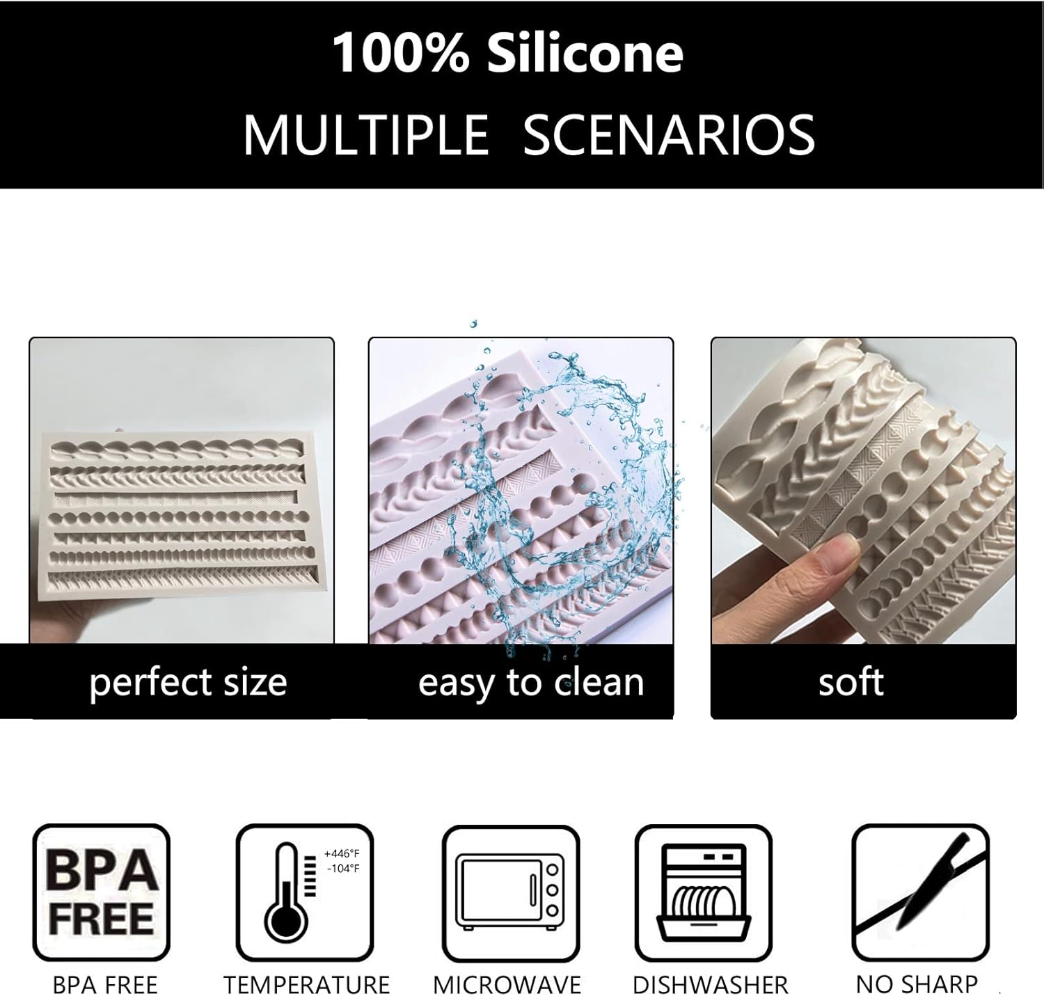 • [WIDE APPLICATION]: These clay border molds are perfect for cake decoration, cupcake toppers, baking, etc. Lovely for making candy, chocolate, etc. Excellent for sugar craft, gum paste, clay, resin, etc