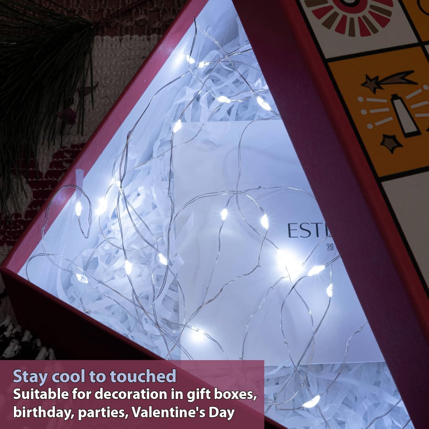 • 【Bendable and Cuttable】: Thanks to the flexible and soft copper wire materials, the wire part can be cut to your needs and can be bent and wrapped easily around stair railings, Christmas trees, mason jars, plants, wreaths, mirrors, flowers, gardens and almost everything else. Perfect to creating a romantic cozy atmosphere. (The end with the battery box cannot be cut off).