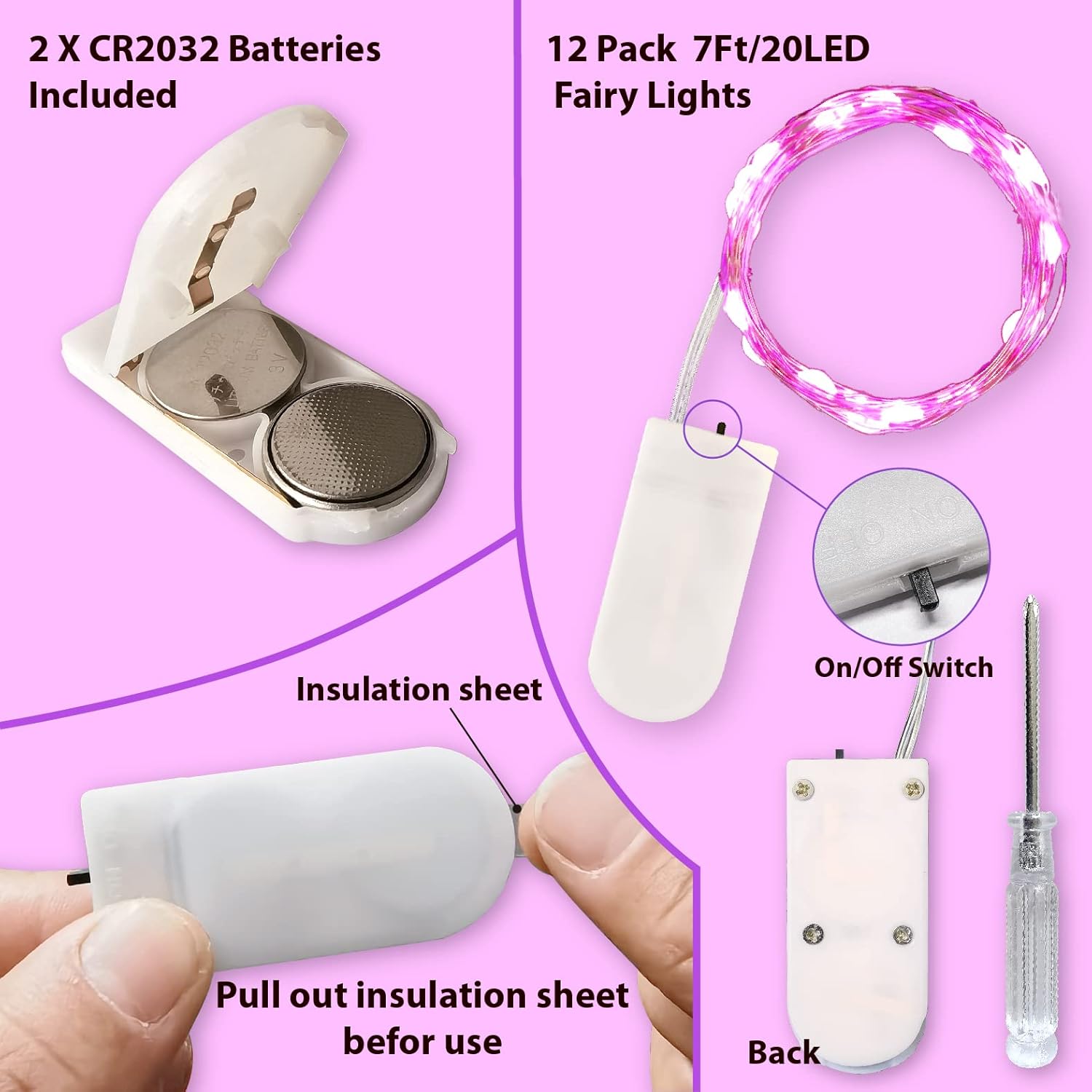 • 【Fantastic Pink Lights】: 12 separate mini fairy lights battery powered, made of 7ft high quality Silver coated copper wire, It’s flexible, strong and durable. Perfect for your crafts project , floral arrangements plants, signs, furniture glass jars, vases, wine bottles or other decorations.