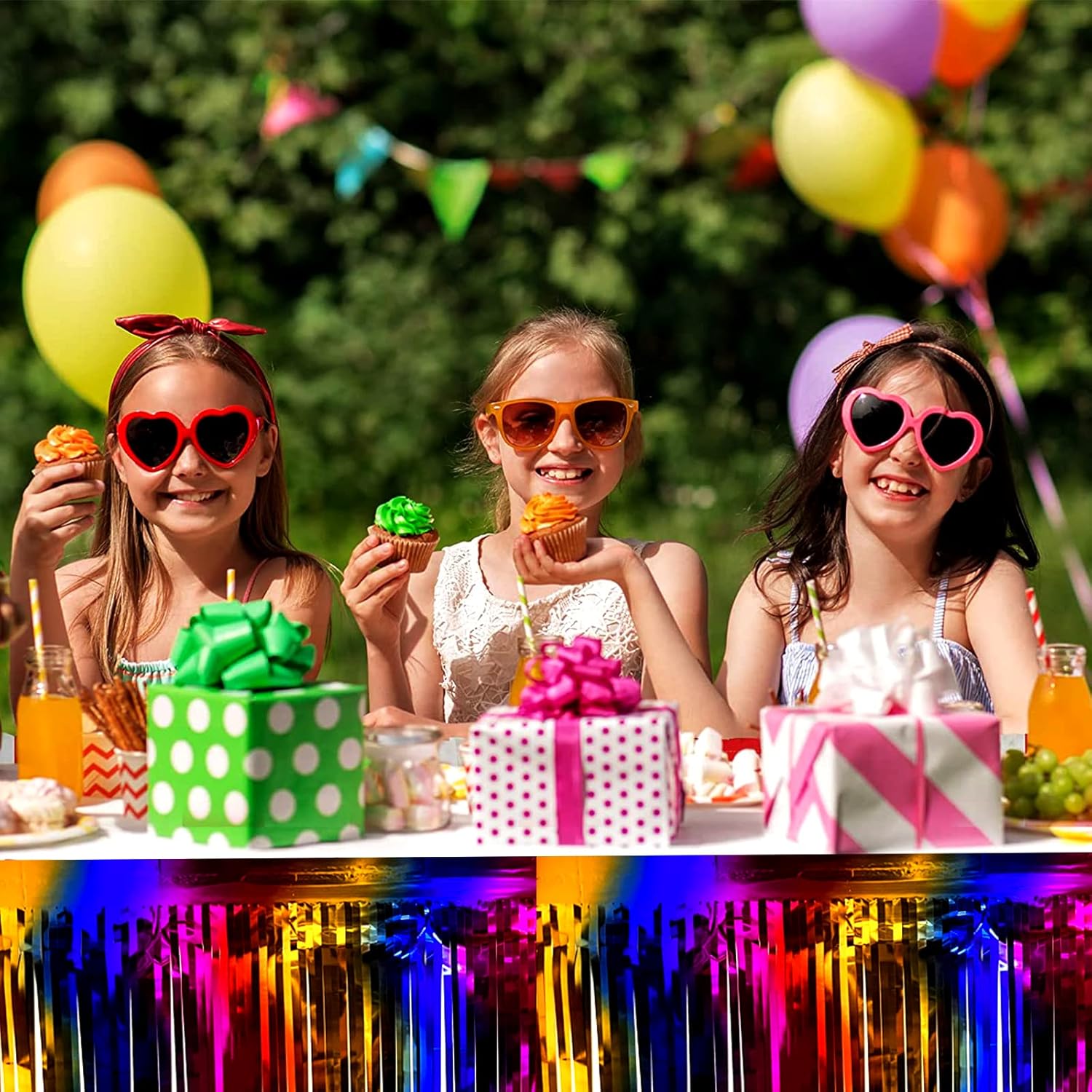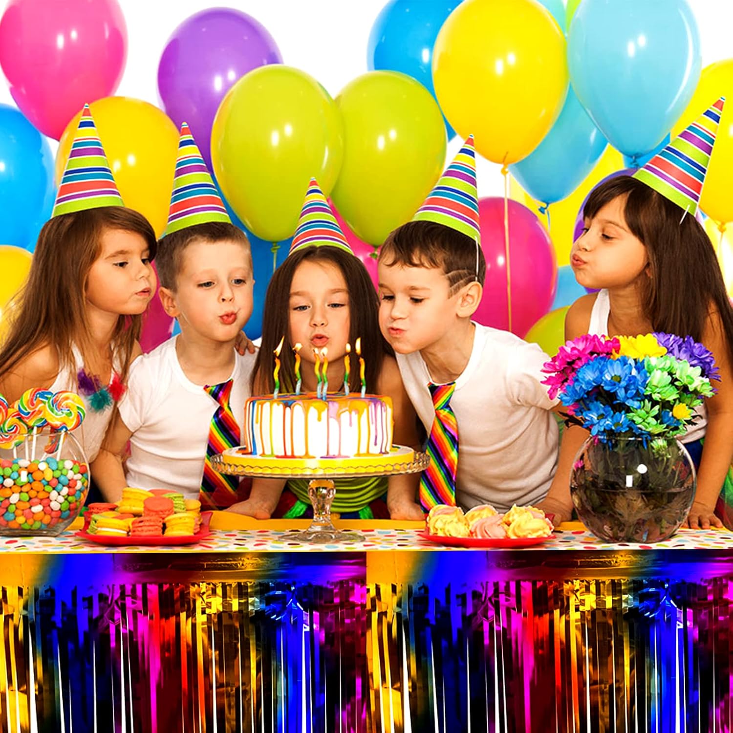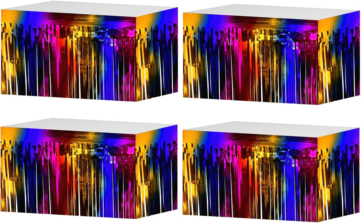 4 Pack 29x108 Inch Metallic Foil Fringe Tinsel Table Skirts for Rectangle Tables Streamer Backdrop for Wedding, Birthday, Parade Floats, Christmas, Halloween Party Decoration(Rainbow)