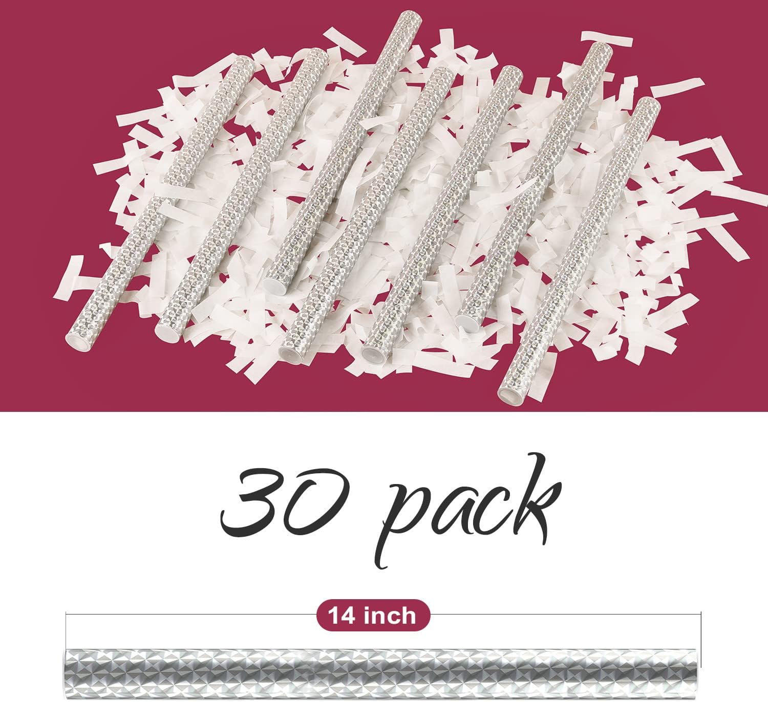 BATTIFE 30Pack White Confetti Wands, 14 Inch Tissue Paper Confetti, Flick Flutter Sticks for Wedding, Celebrations, Anniversary, Birthday, Graduation Party