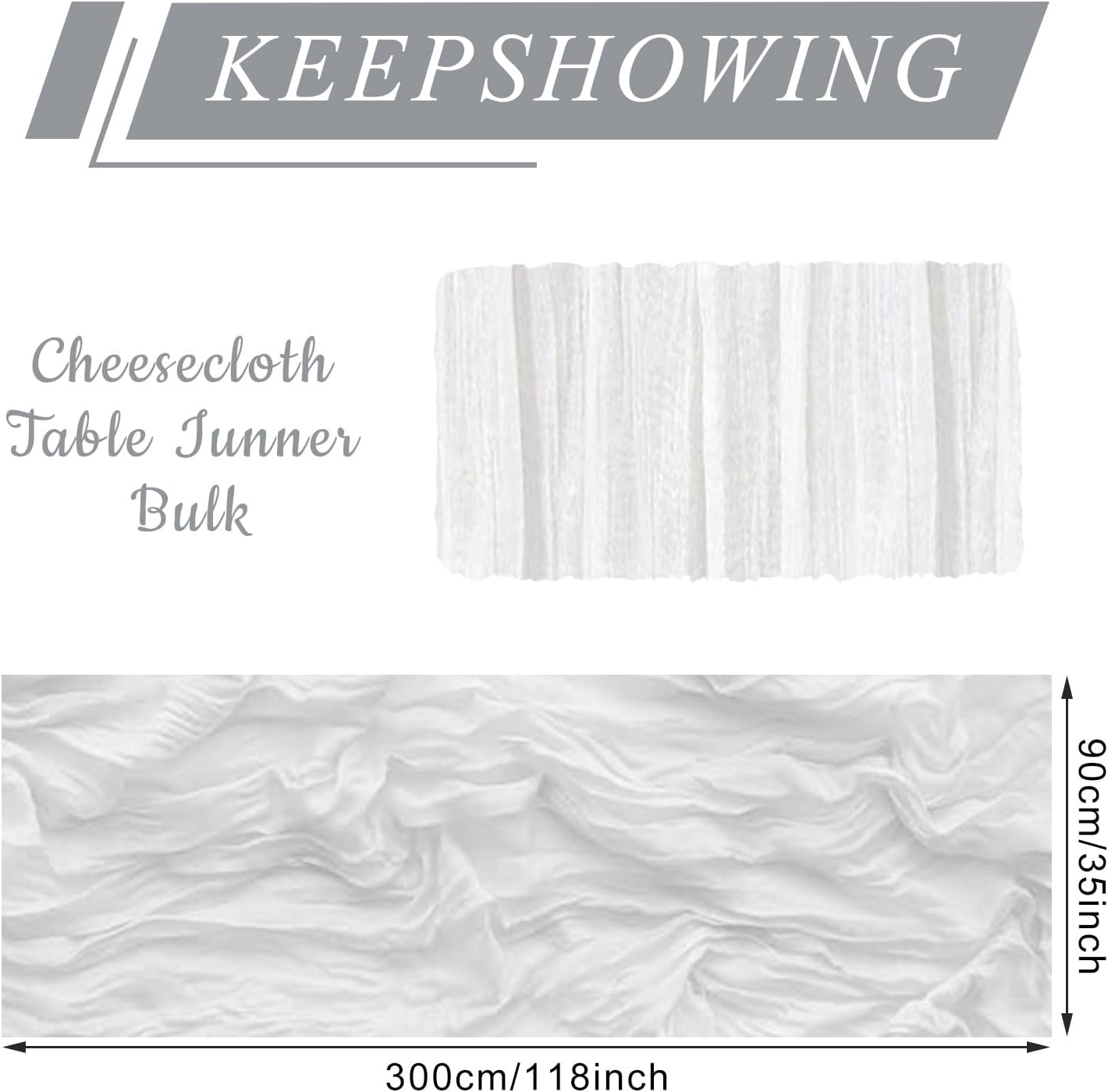 • Package Contents: You will get 12 pieces cheesecloth table runner, 35" wide and 118" length, which is large enough to cover rectangle or round tables, long enough for you to use.