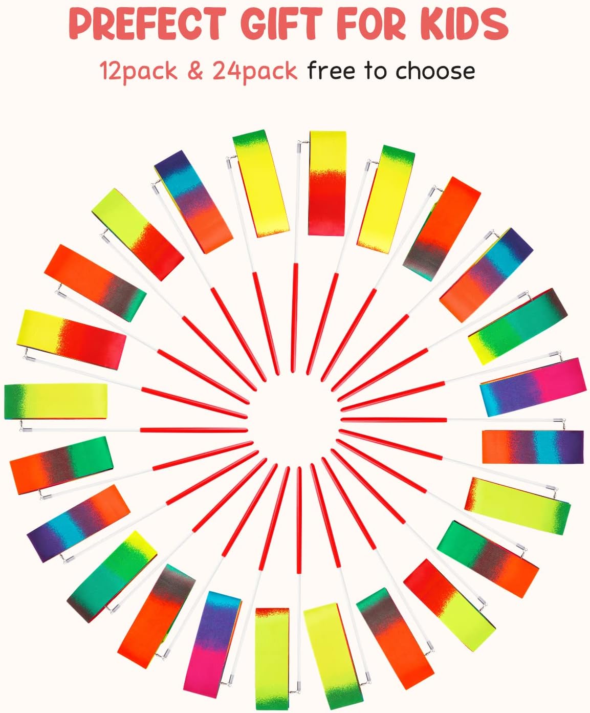 • Package included:Each package contains 12 dancing ribbons of multicolors. The Ribbon length 200 cm/78.7 inches and the sticks length: 30.5cm/12 inches,which is enough for kids and adults to dance