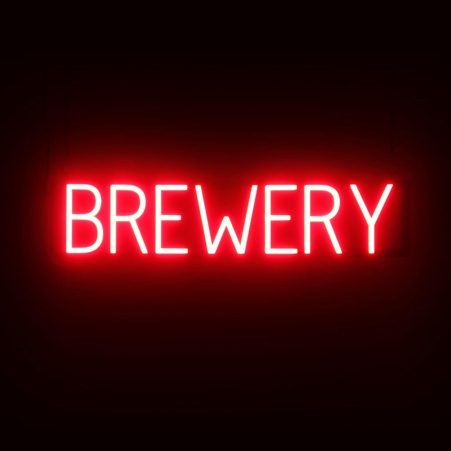 SpellBrite BREWERY Sign | Beer-Related Sign with Neon Look, Red LED Light Source | 29.1" x 6.3"