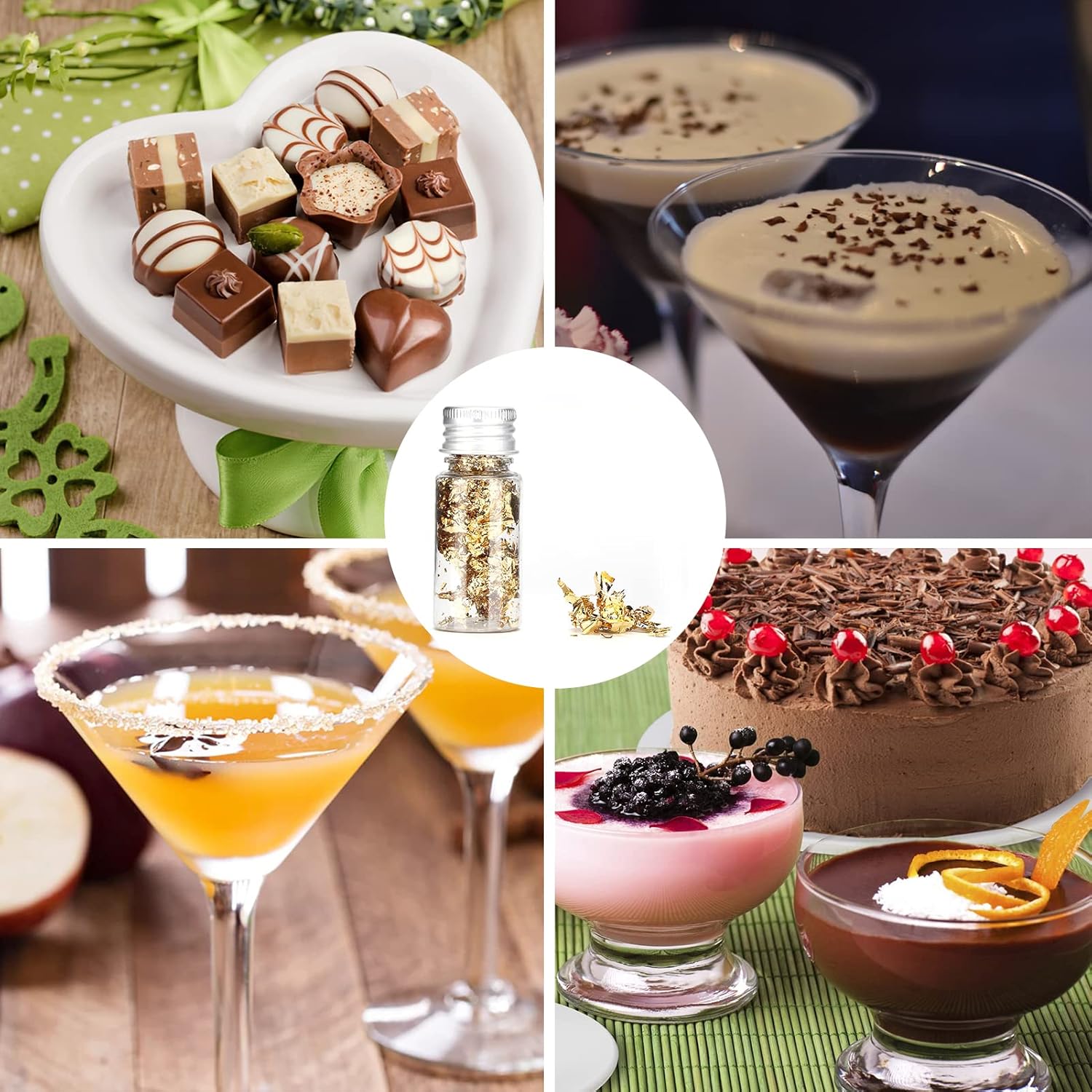 • Perfect Decoration For Food: Edible gold flakes is a perfect decorative items, can be added to coffee, tea, hot pot, seasonings, cosmetics, bath agents, etc. Gold leaf fakes beautiful and stylish, gold flakes for crafts can be widely used in families, bars, restaurants, etc