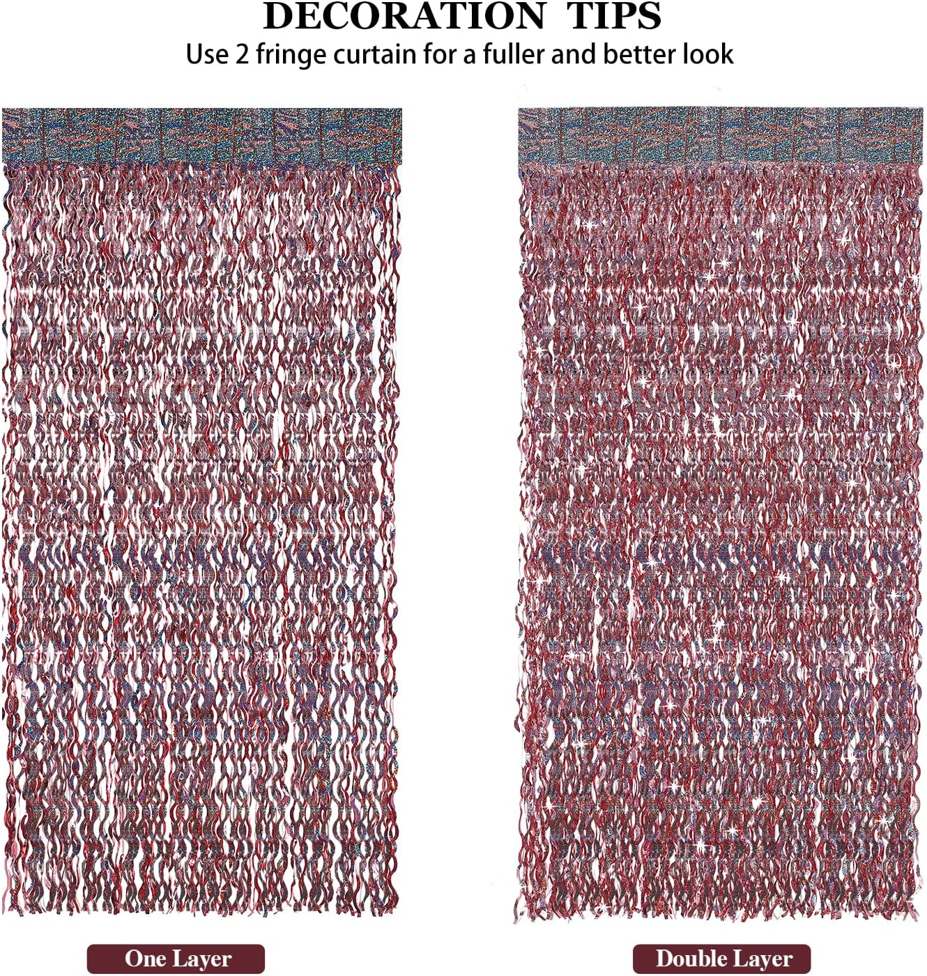 • TIPS: 1 You also can use your own tapes to make the fringe stick sturdy 2 You can cut the tinsel by scissors into the suitable length and width for your party use three pcs of the curtains side by side to make the backdrop larger, or layer the 2 pack curtains to achieve a thicker and denser effect