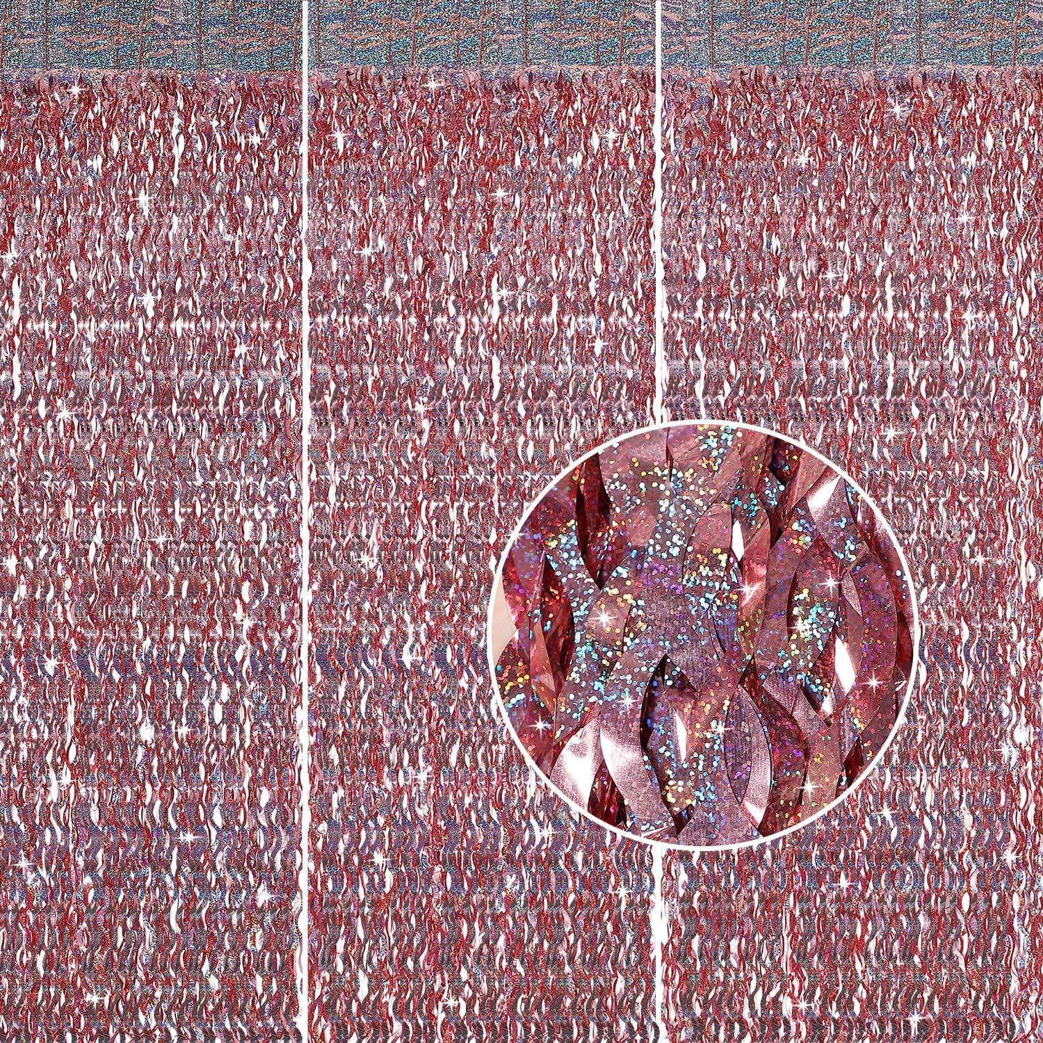 • Packing Included: 3 packs rose gold tinsel foil fringe curtains party photo backdrop,Each pack curtains size is 3.3ft x 6.6ft, enough length for decorate your party