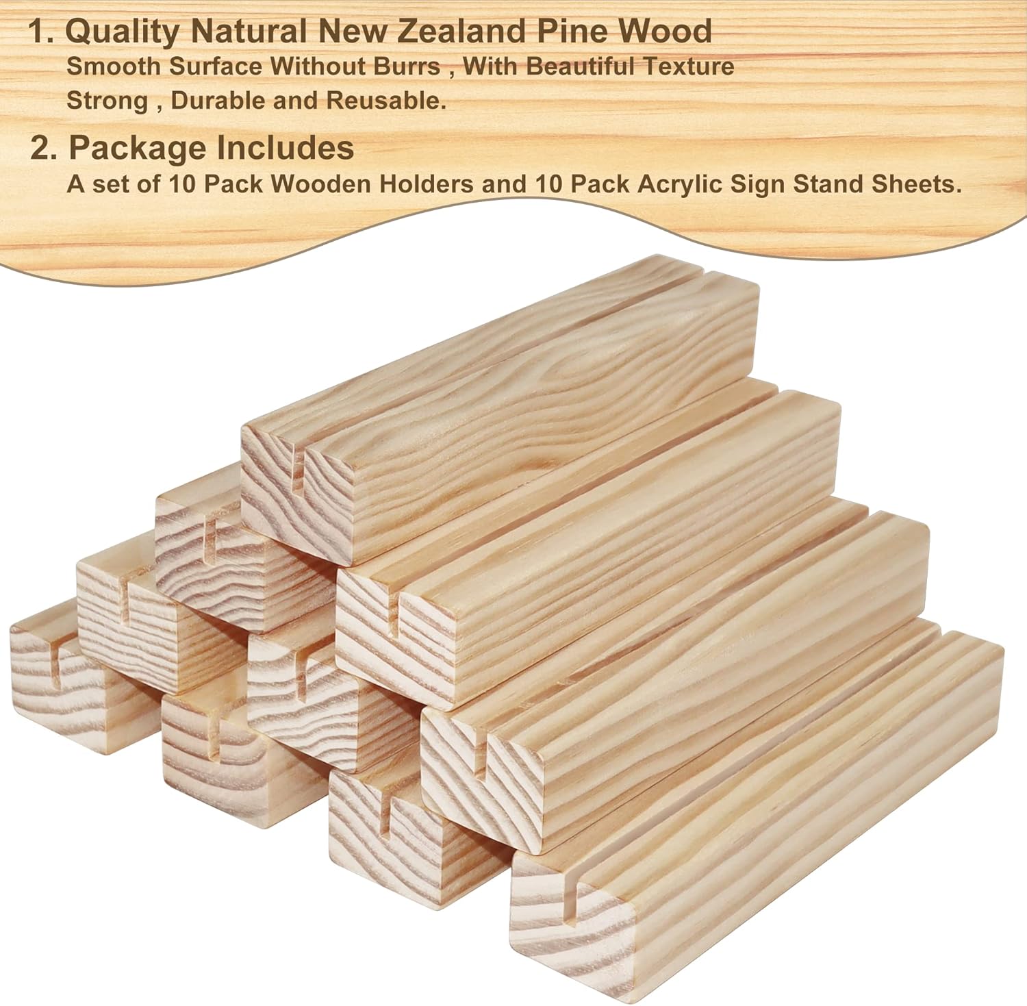 • Quality Material Adopted - Our blank acrylic signs are made of high quality 1/8” thick clear acrylic. Table number stands are made of natural pine wood material. The acrylic blanks with stand are precisely cut with clean lines and polished with smooth edges. Durable for long time use. It won't easily leave scratches on the surface.