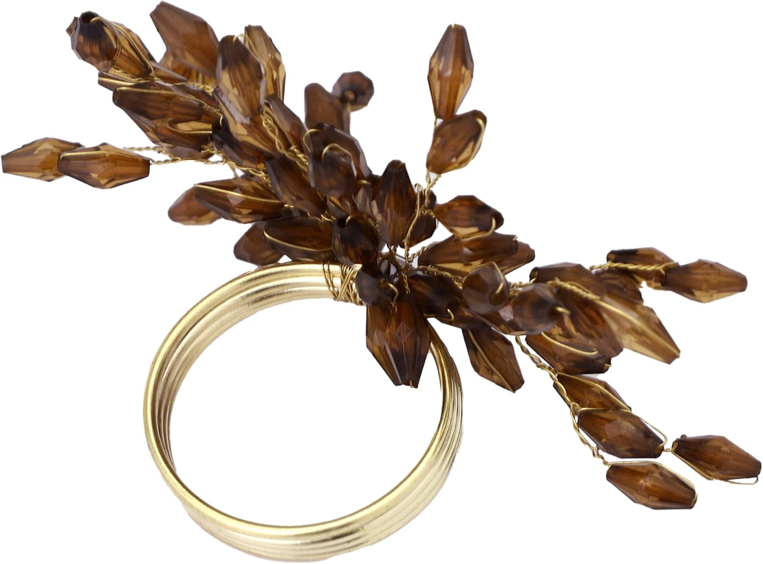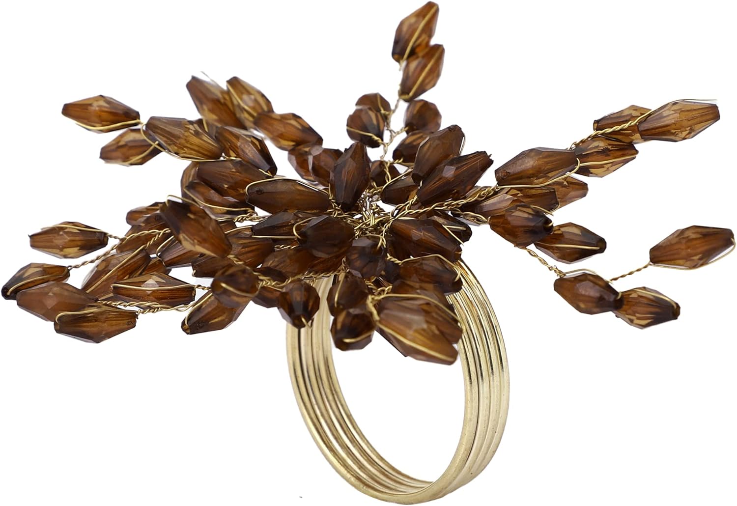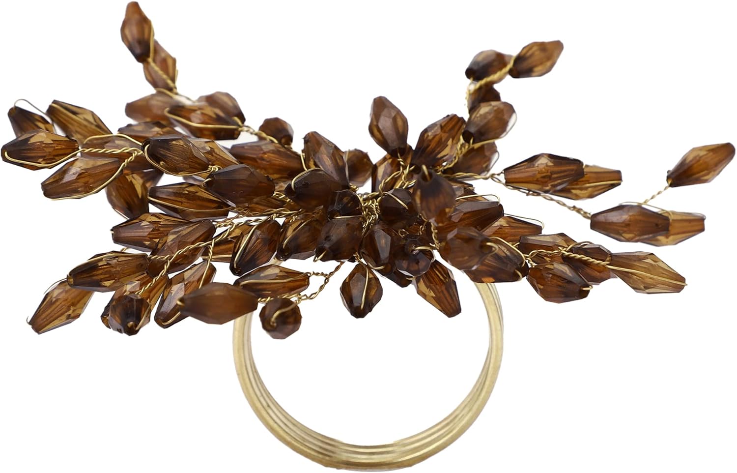 Napkin Rings Set of 6 for Dining Table Decoration Parties Everyday Metal Napkin Holder Leaf Coffee (Pack of 6)