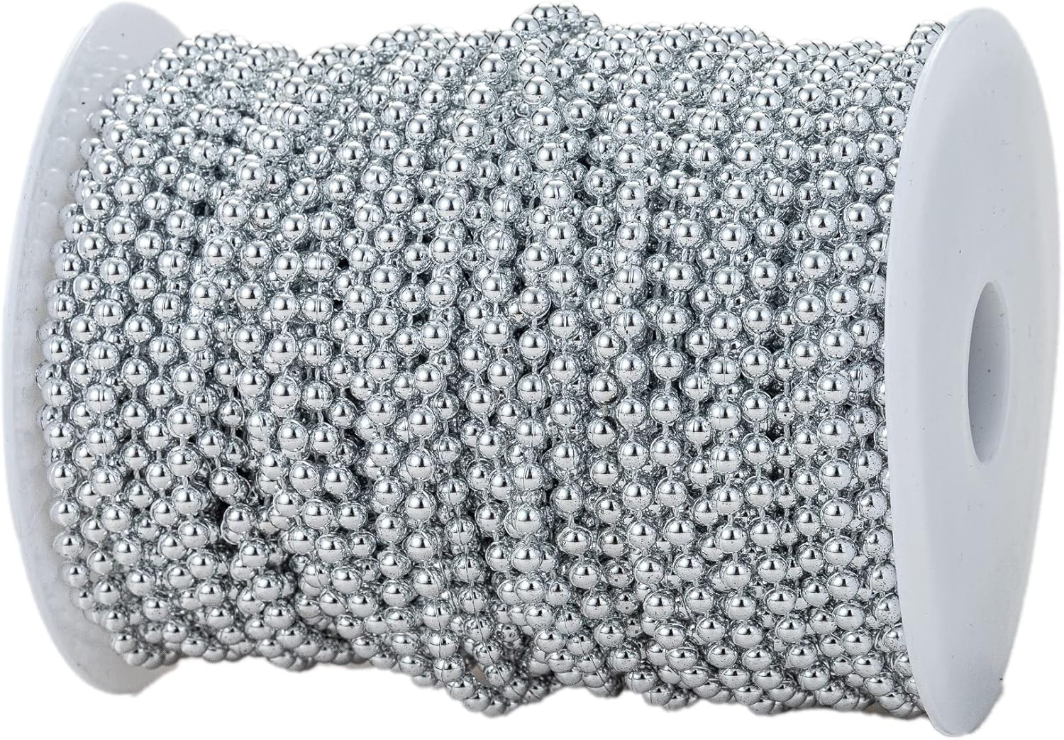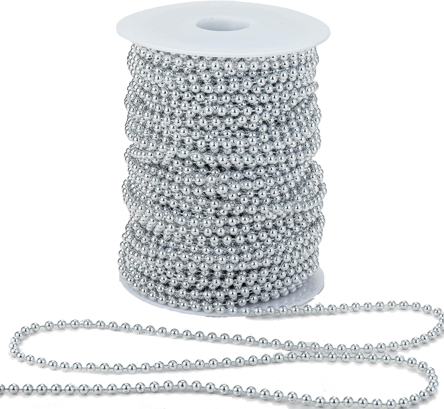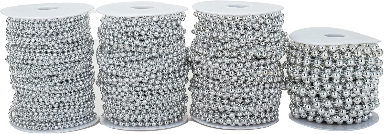 4mm Crafts Faux Pearl Beads Garland Pearl Bead Roll Strand of Pearls to Decorate Floral Centerpieces Wedding Party Favor Christmas Tree(131 Feet Silver)