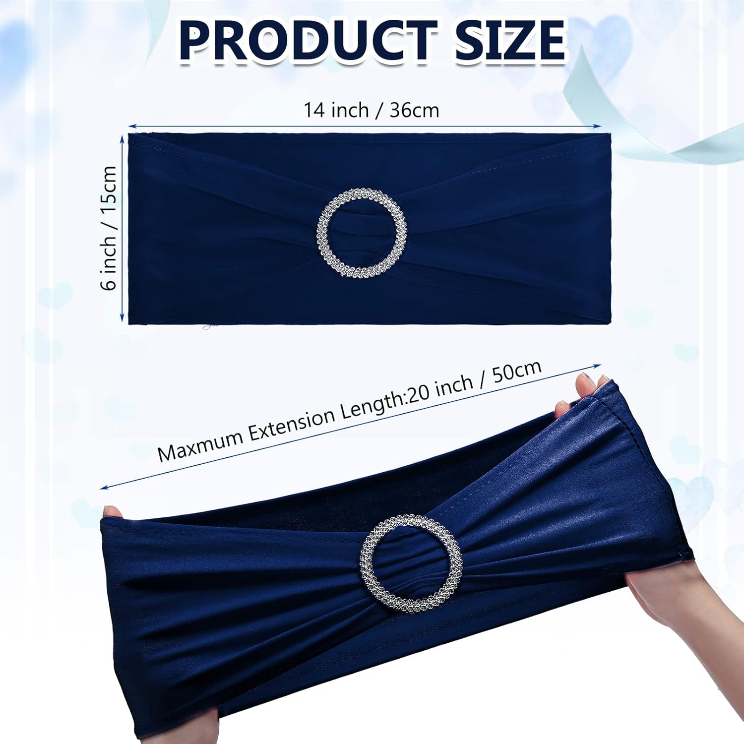 • Enough Quantity: 150 pieces chair sashes with buckle slider can meet your needs of various parties and activities; Each chair bands measures about 6 x 15 inches/ 15 x 36 cm, which is suitable for a chair of 13 to 20 inches, adding elegance to your banquet and a touch of sophistication to any formal occasions