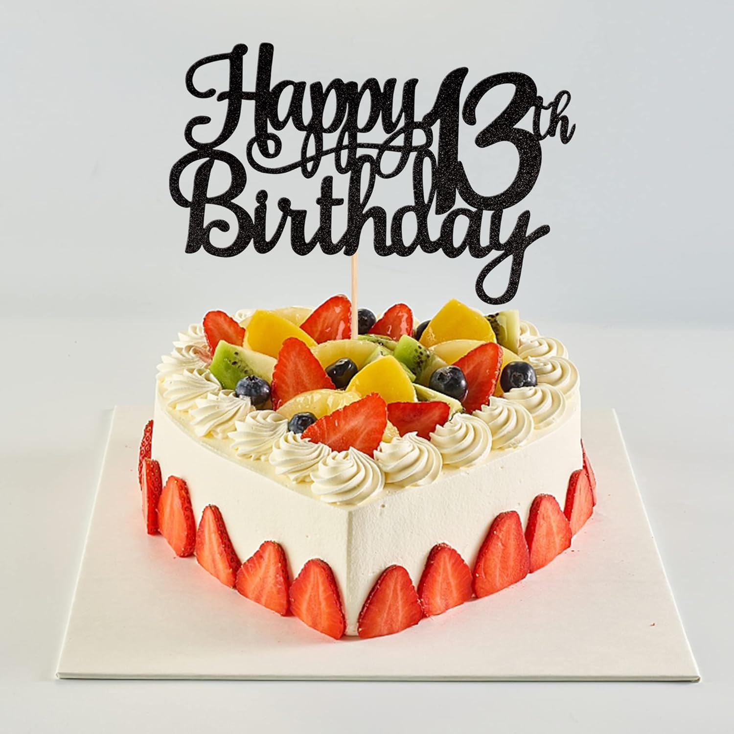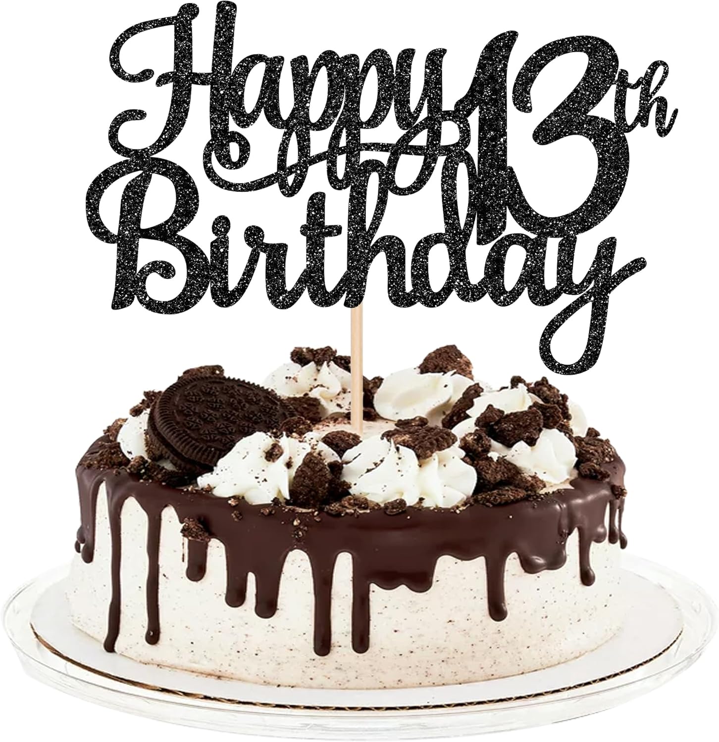1 PCS Happy 13th Birthday Cake Topper Glitter Cheers to 13 Years Birthday Cake Pick Official Teenager 13 Fabulous Cake Decoration for Happy 13th Birthday Theme Party Decorations Supplies Black