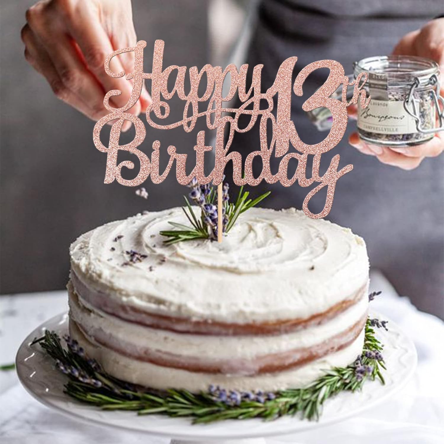 1 PCS Happy 13th Birthday Cake Topper Glitter Cheers to 13 Years Birthday Cake Pick Official Teenager 13 Fabulous Cake Decoration for Happy 13th Birthday Theme Party Decorations Supplies Rose Gold