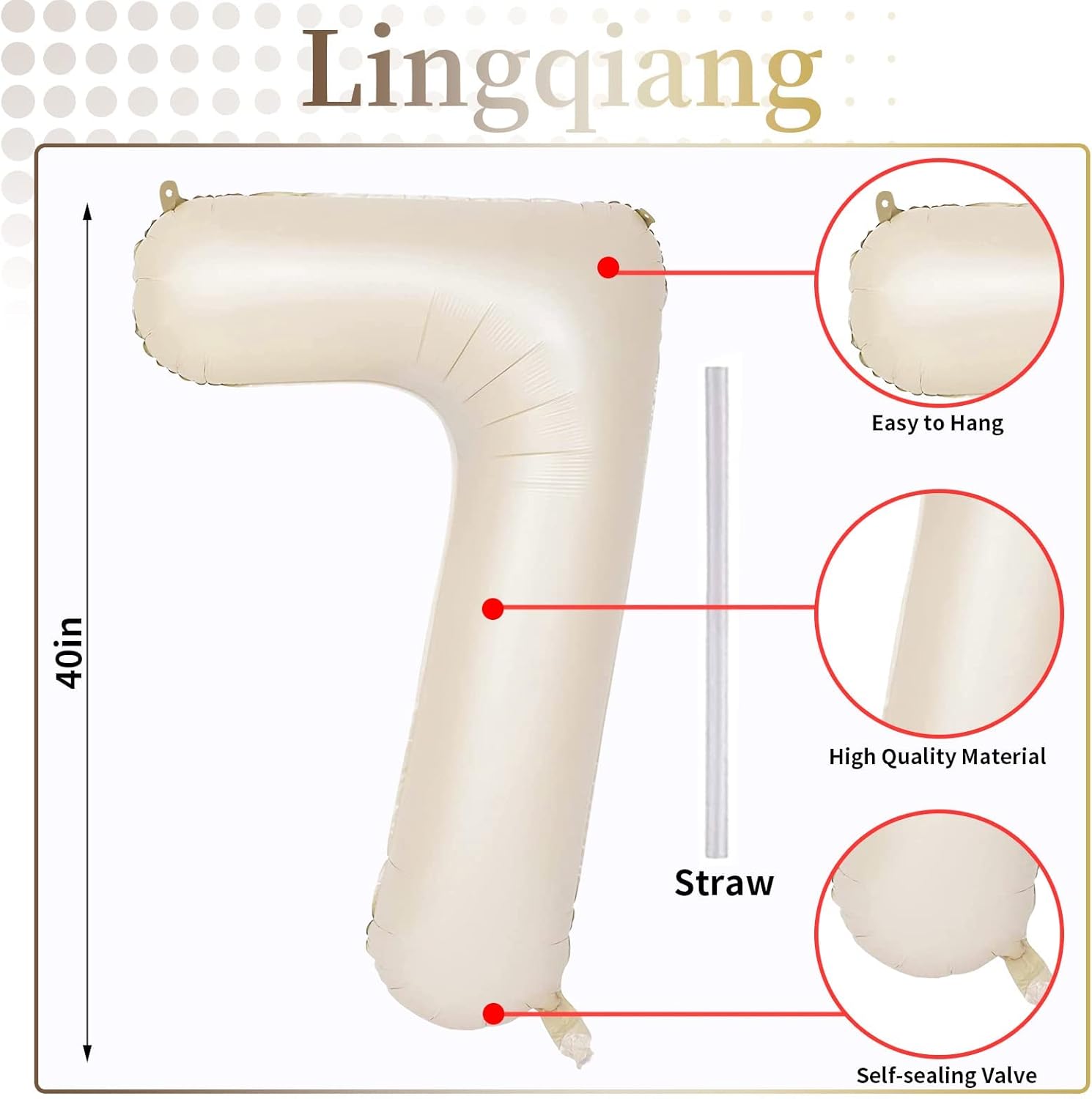 • πŸŽ‰ Beige Number 7 Balloon πŸŽ‰ - You will get 1pc 40 inch mylar foil number 7 balloon and 1pc straw. Perfect for 7th 17th 27th 70th 75th birthday or anniversary party decorations supplies.