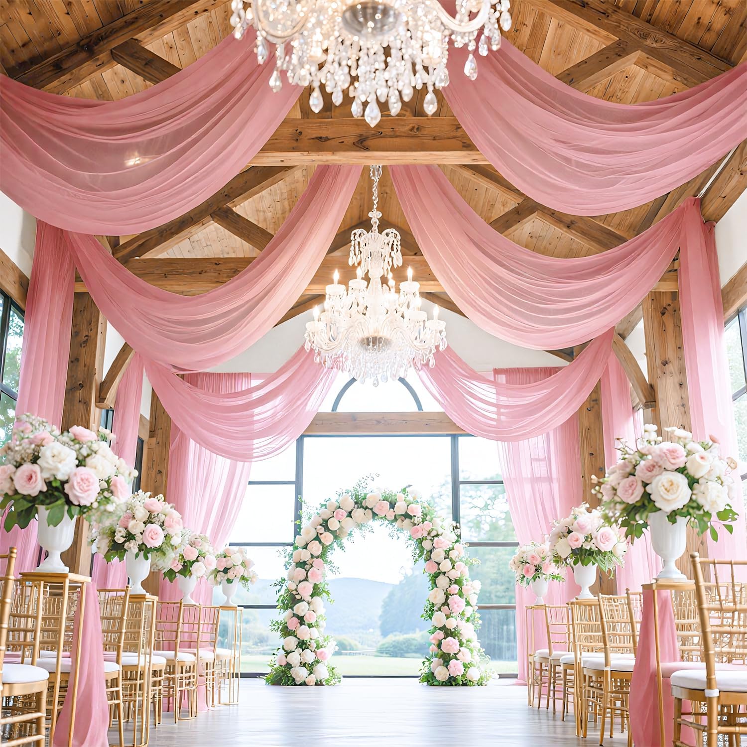 FUHSY Wedding Ceiling Drapes Sheer Fabric for Draping 2 Panels 5x20 FT Dusty Rose Backdrop Curtains for Party Wedding Arch Draping Fabric Chiffon Ceiling Curtains for Outdoor Wedding Ceremony