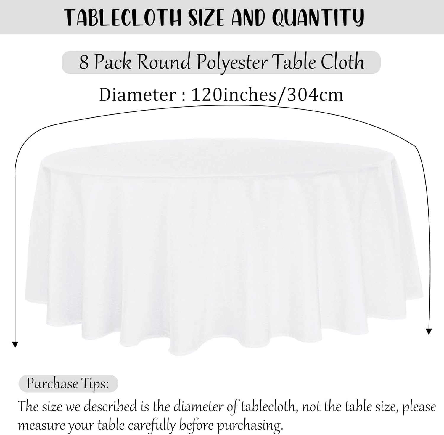 8 Pack Premium Round Tablecloth 120 Inch Round Table Covers Washable Polyester Fabric Round Table Clothes for Wedding Party Reception Banquet Buffet Restaurant (White, 120 Inch)