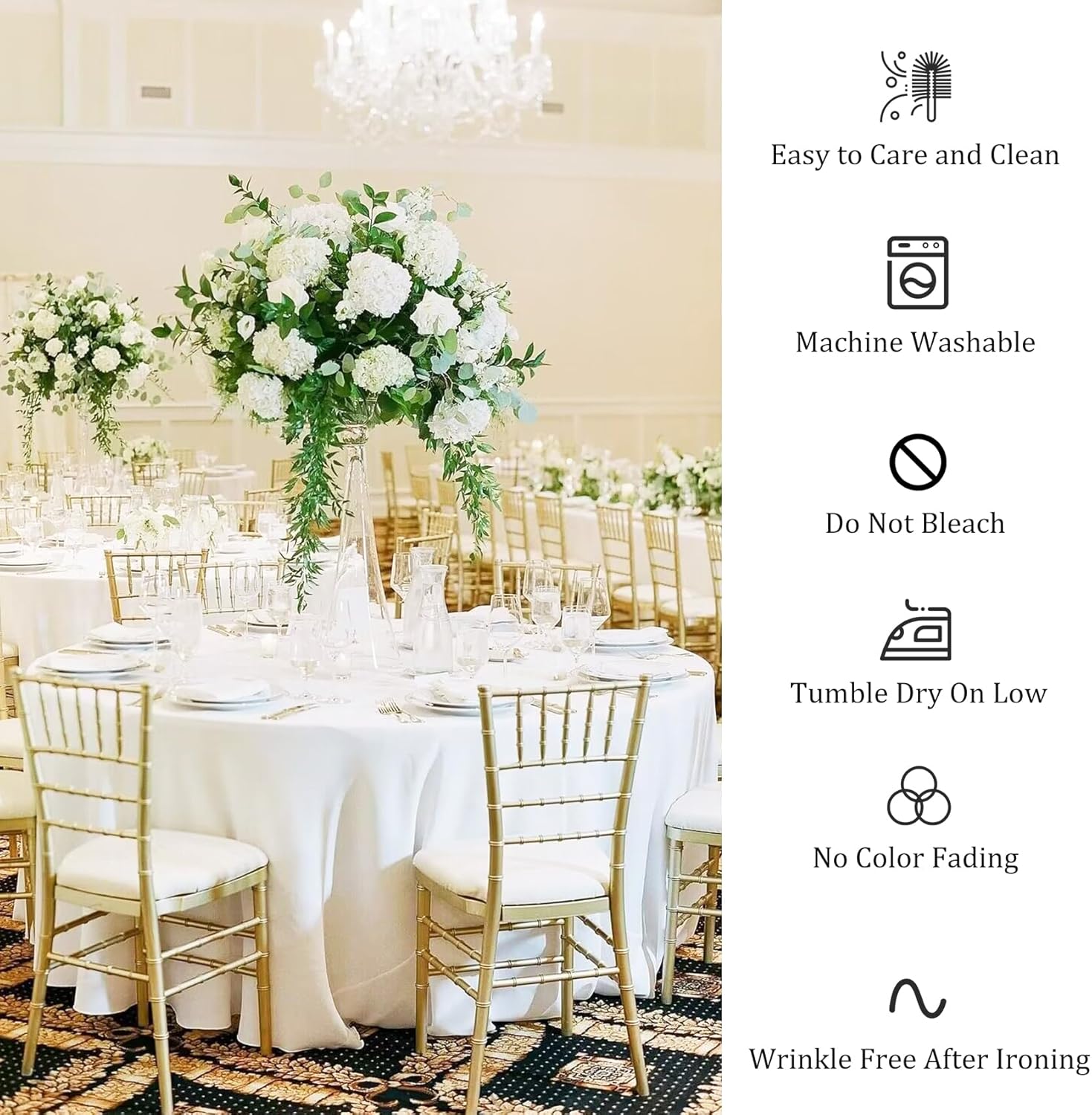 • Package Include: you will get 8 pieces white polyester round tablecloth, enough quantity is suitable for wedding banquets and various parties, the size of each tablecloth is approximately 120 inches / 304 cm, which is large enough to cover 48" to 72" round tables, classic in color and exquisite in design, the solid color makes them suitable for various occasions, instantly heightening the elegance of your table.