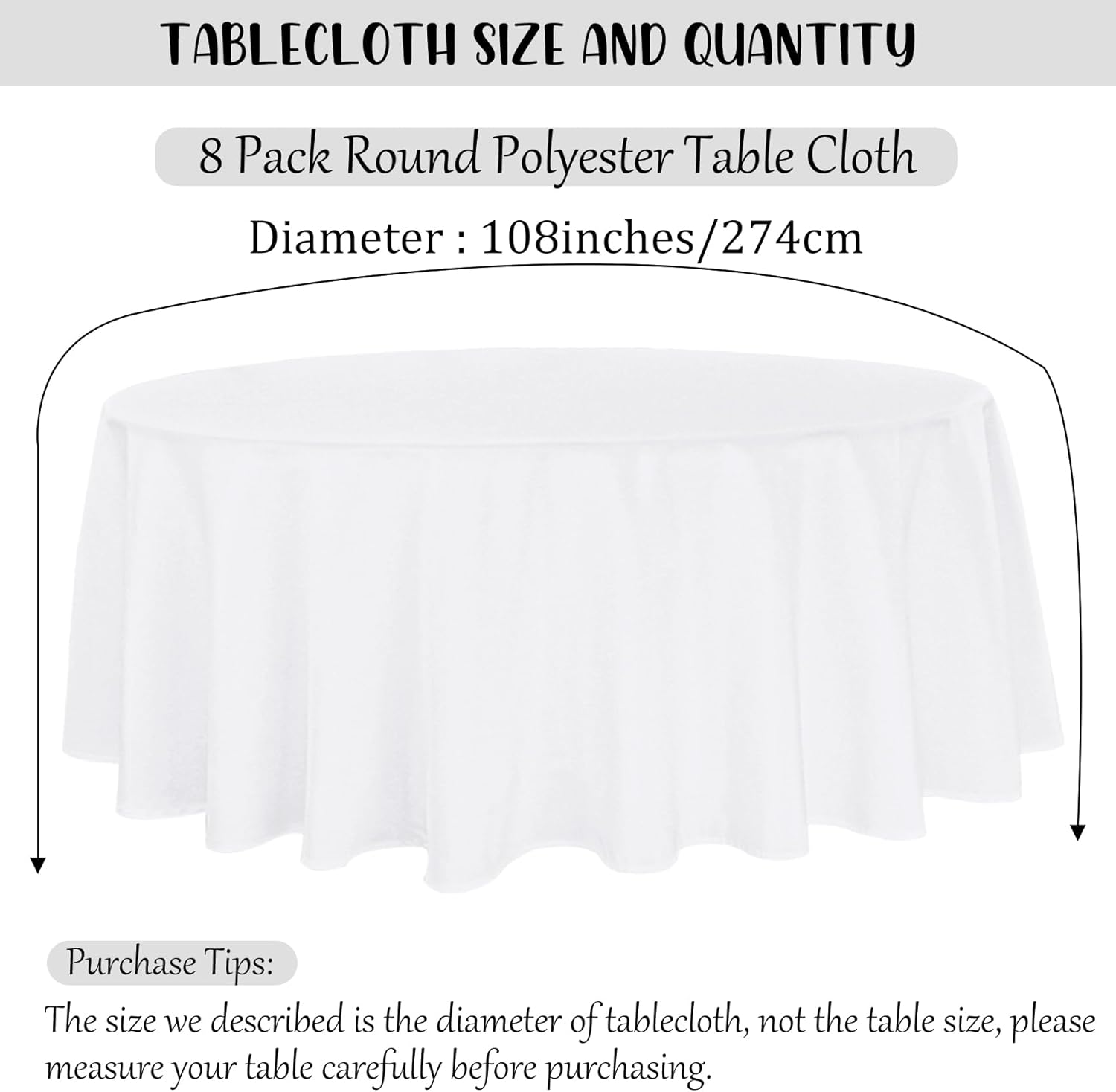 8 Pack Premium Round Tablecloth 108 Inch Round Table Covers Washable Polyester Fabric Round Table Clothes for Wedding Party Reception Banquet Buffet Restaurant (White, 108 Inch)
