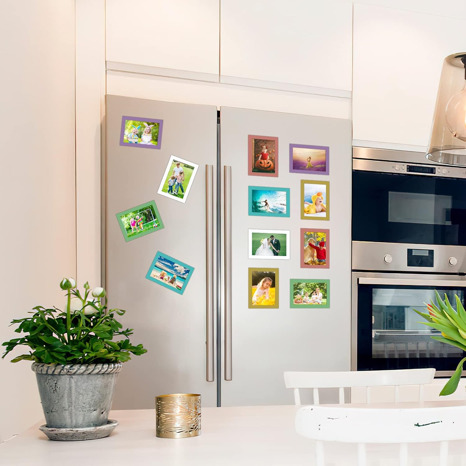 • 6 colors highlight your pictures, brighten your fridge, showcase your memories vividly. 12 packs of magnetic peel and stick frames meet your home decor and business needs at one time.