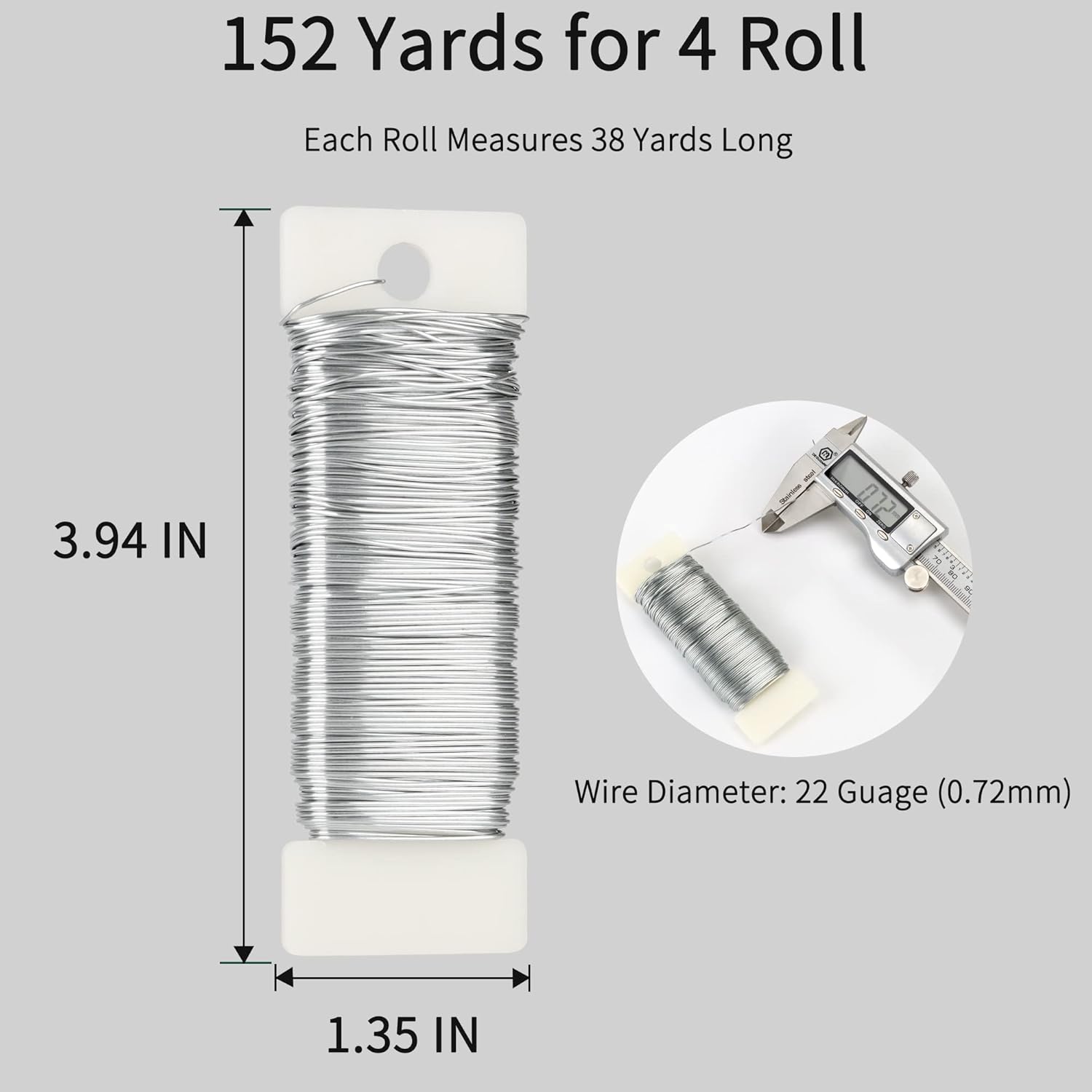 • ✅WIRE DIMENSIONS - Diameter: 22 gauge (0.72mm), length: about 38 yards/ 35 meters per roll, for a total of around 152 yards (4 rolls X 35 meters)/ 456 feet. The paddle is 3.94 x 1.35 inches (L x W). The floral wire is long enough to complete any craft project without fear of running out of length.
