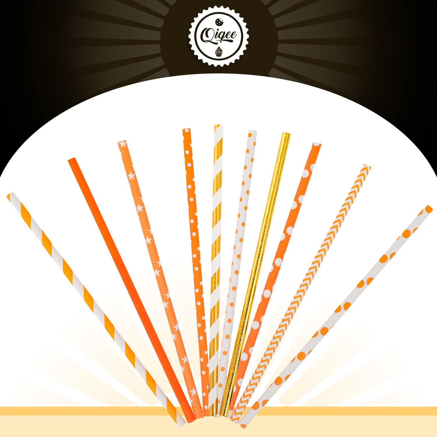 qiqee Gold Orange Disposable Straws for Drinking 150pcs Disposable Straws Bulk(10 Pattern)