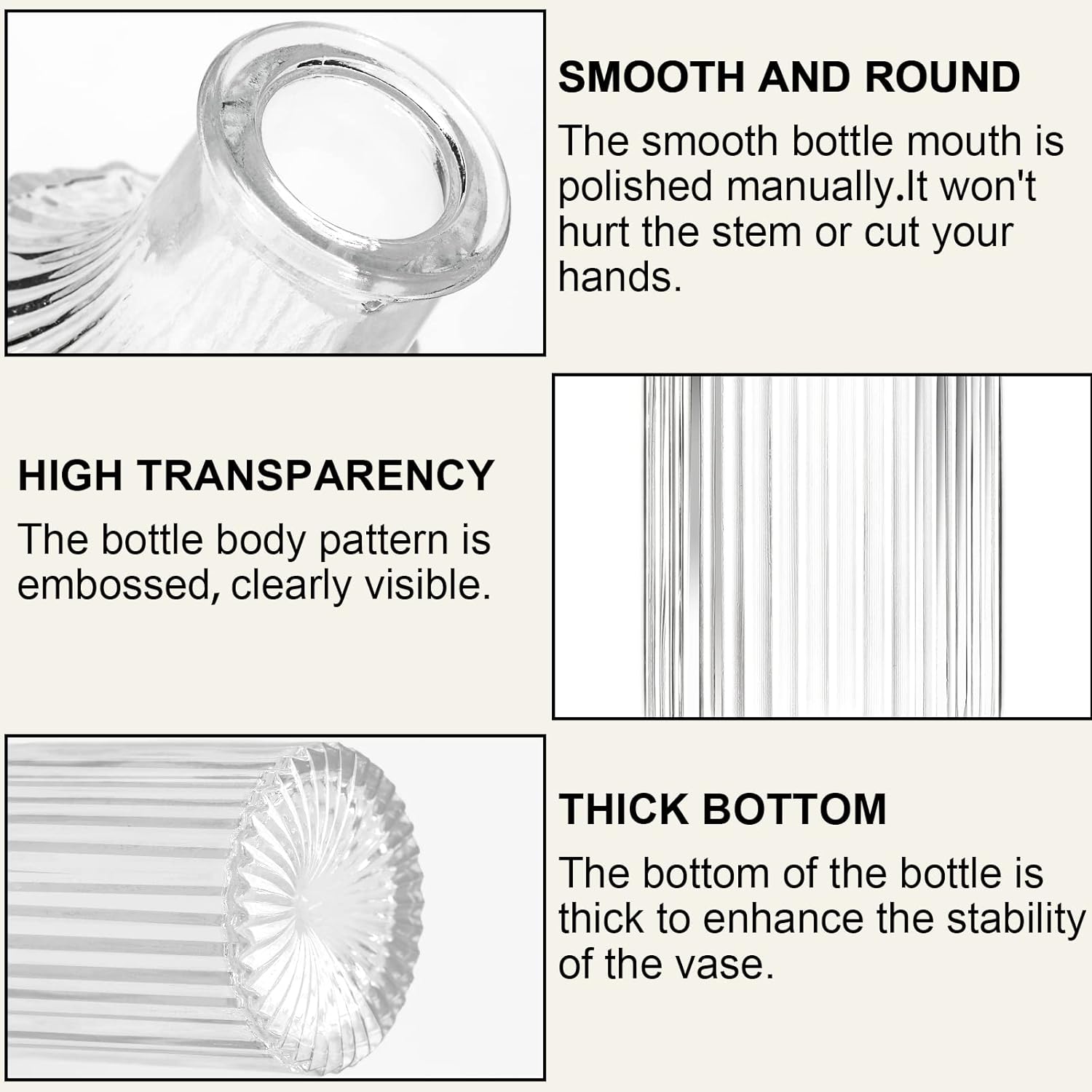 • Refined Craftsmanship: Arme's miniature clear vase is made of high-quality thick borosilicate glass. Each vase is hand-blown to achieve a smooth and scratch-free surface. Every vase has been drop tested and is more durable than other glass products on the market