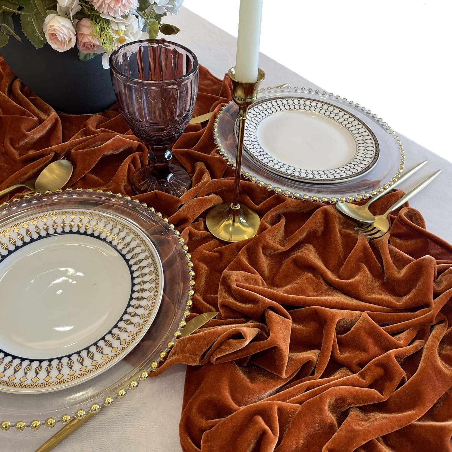 Luxurious Velvet Table Runner, Terracotta 120 Inches Wedding Table Runners, 10ft Velvet Home Party Table Decorations