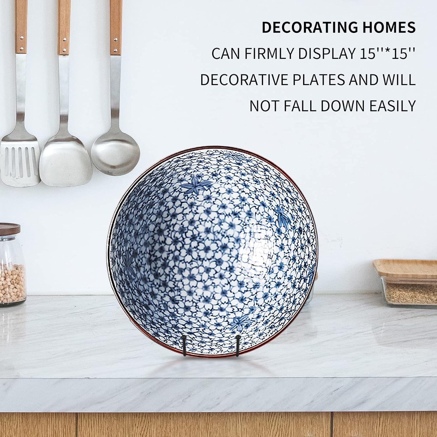 Decolore 8 Inch 5 Pack Black Metal Display Stands Plate Stand Plate Holder Display Stands for Picture, Decorative Plate, Book, Photo Easel, Artistic Work