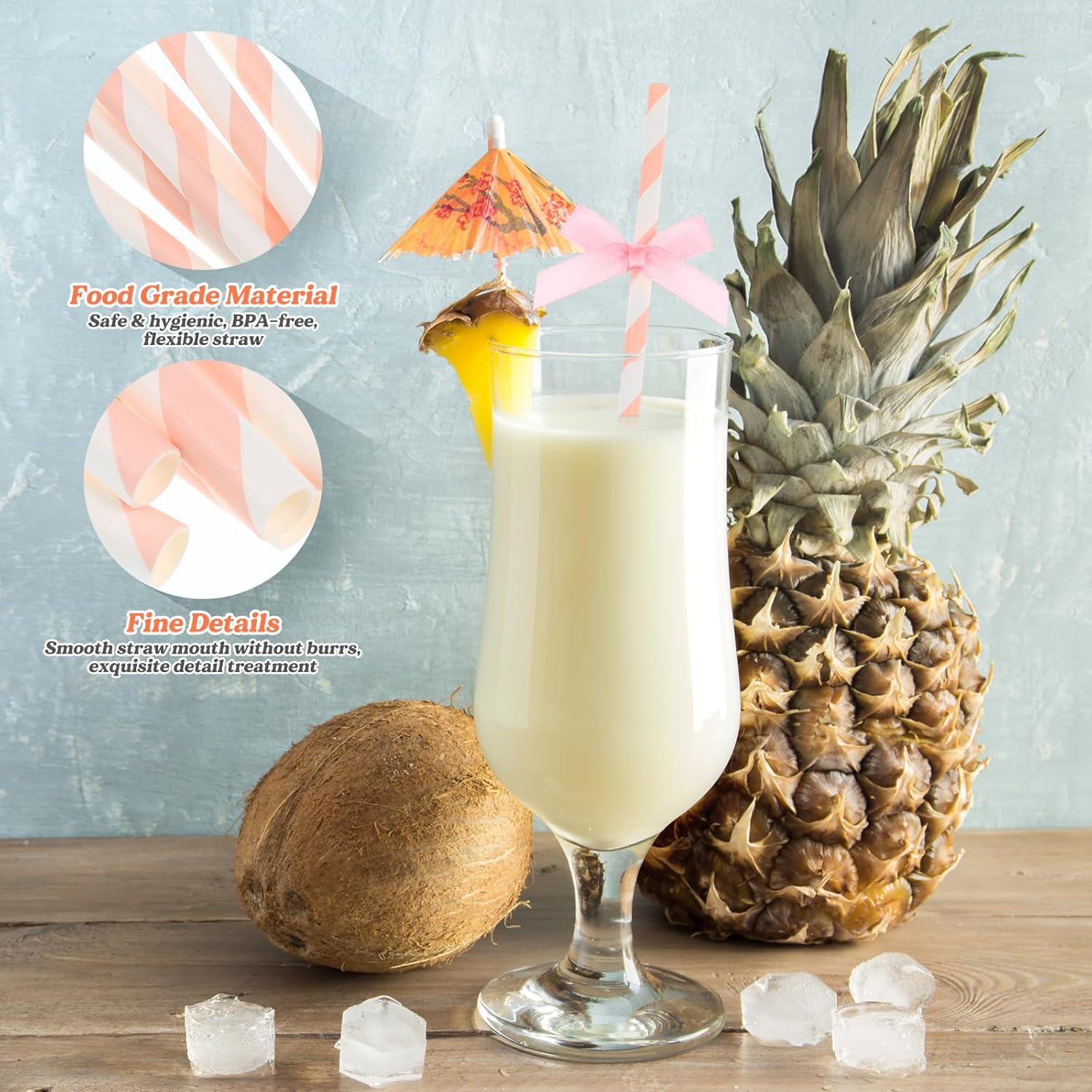 • Cute and Elegant Design: These pink paper straws are suitable for a touch of elegance and cuteness to any party or event. The pink and white striped design, along with the adorable ribbon bows on each straw, make them a great addition to any occasion