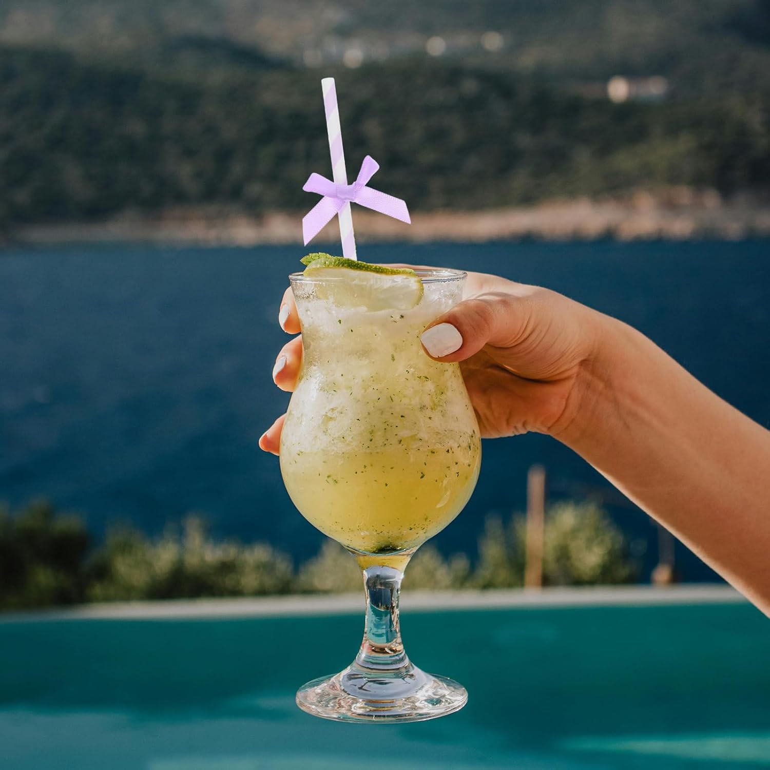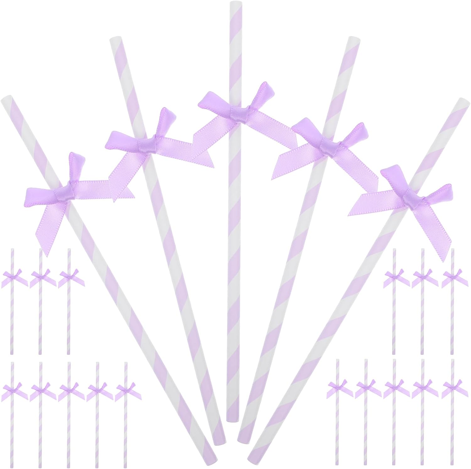 • Charming Design for Aesthetic Appeal: Featuring a lovely purple color with intertwining stripes and chic bow tie decorations, these straws elevate the visual charm of your drinks and impress your guests