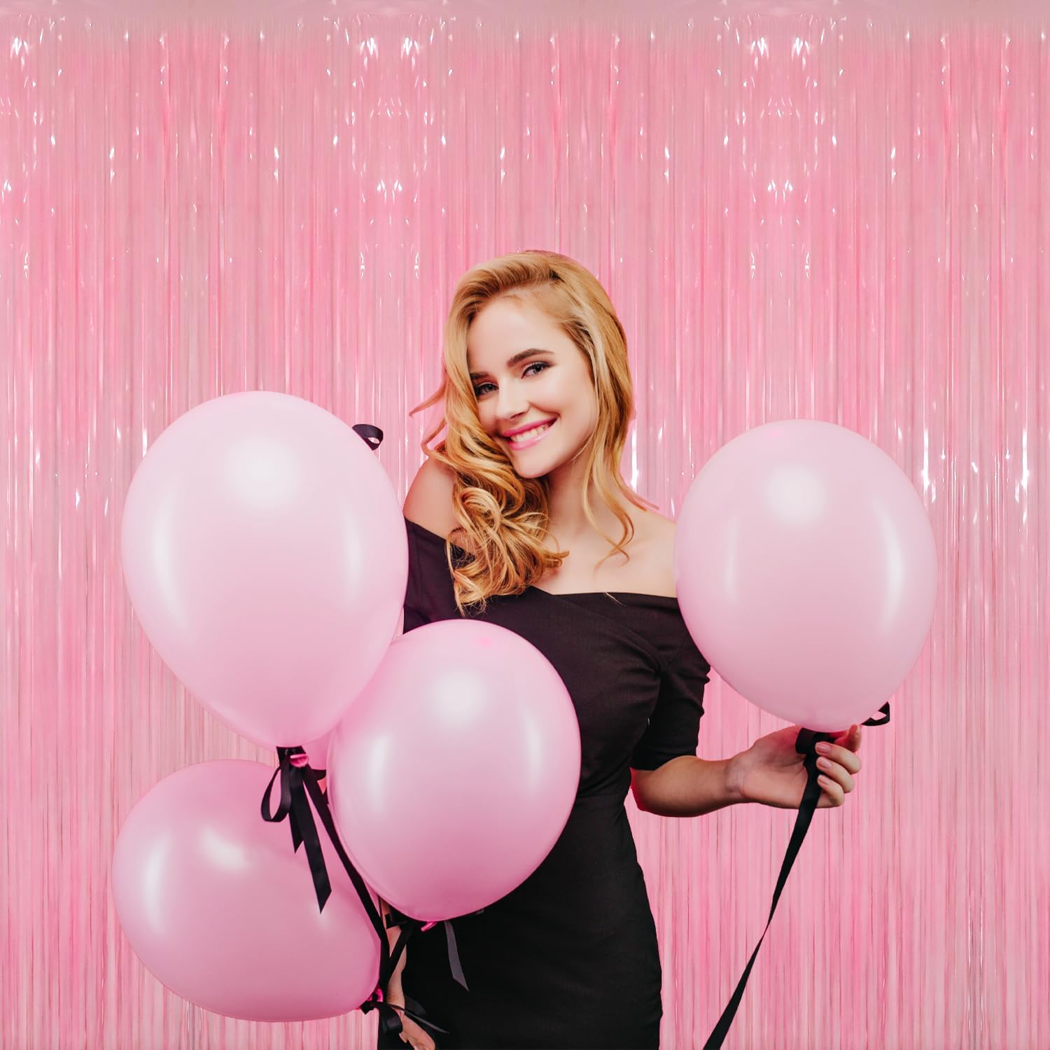 GOER 3.2 ft x 8.2 ft Metallic Tinsel Foil Fringe Curtains Party Photo Backdrop Party Streamers for Birthday,Graduation,New Year Eve Decorations Wedding Decor(5 Packs,Candy Pink)
