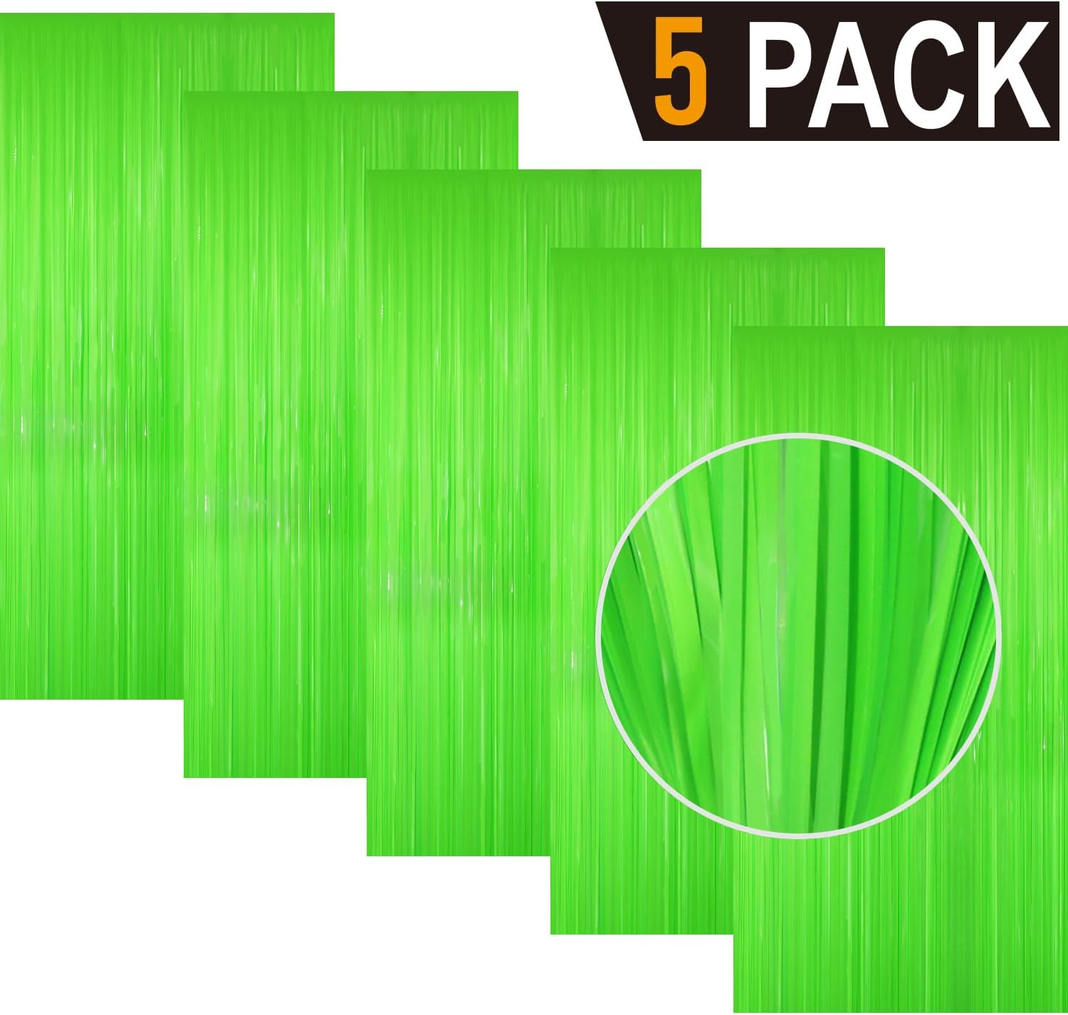 • Package Includes:5 Pack Candy Lime Green Foil Fringe Curtains