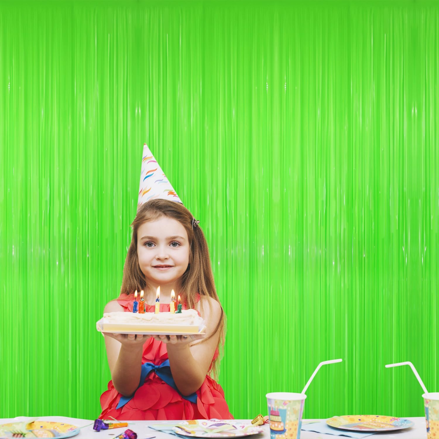 GOER 6.4 ft x 8.2 ft Metallic Tinsel Foil Fringe Curtains Party Photo Backdrop Party Streamers for Birthday,Graduation,New Year Eve Decorations Wedding Decor(2 Packs,Candy Lime Green)