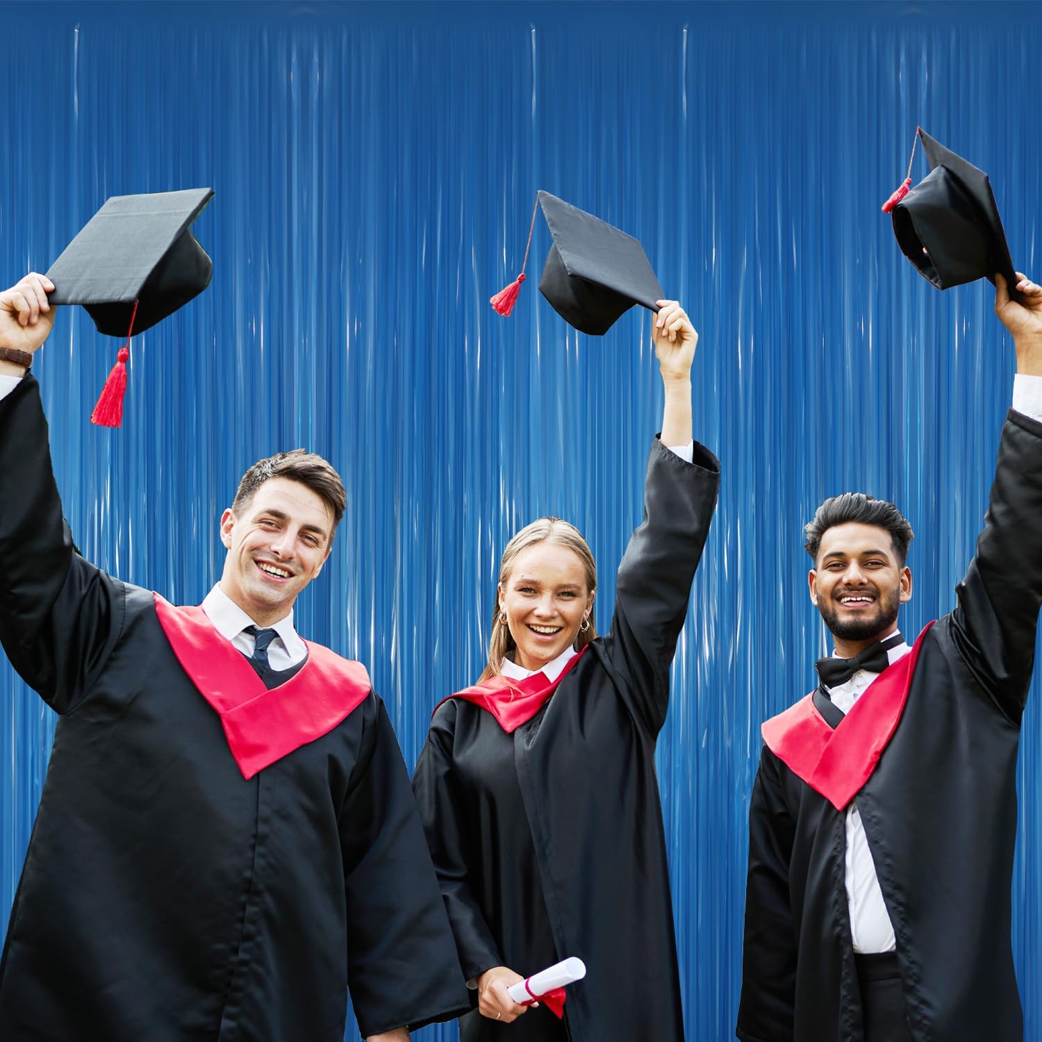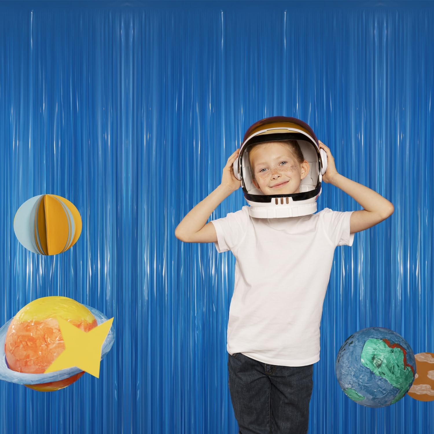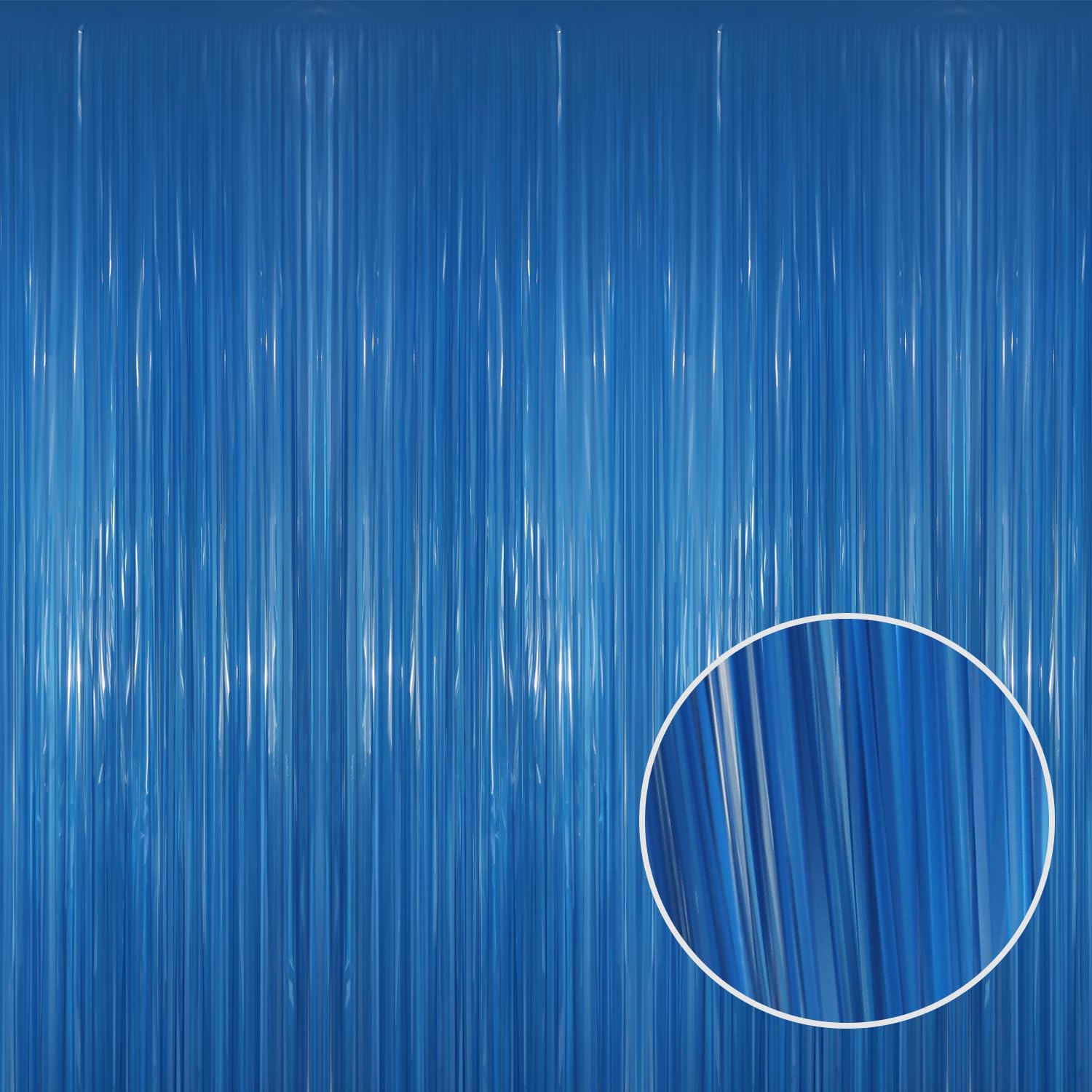 GOER 3.2 ft x 8.2 ft Metallic Tinsel Foil Fringe Curtains Party Photo Backdrop Party Streamers for Birthday,Graduation,New Year Eve Decorations Wedding Decor(4 Packs,Candy Blue)