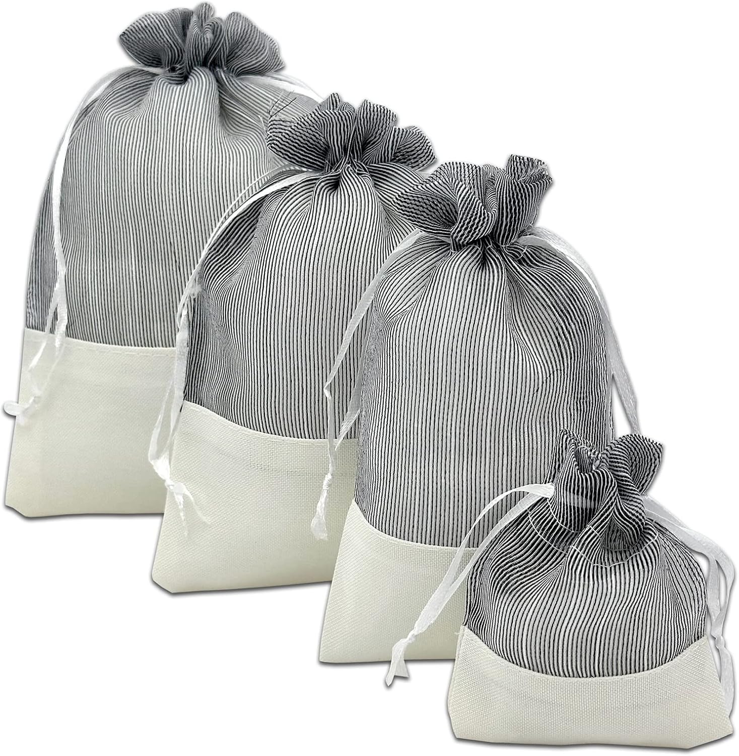 TheDisplayGuys For Your Modern Living 24-Pack Linen & Black Organza Gift Bags with Drawstrings (Medium 5 x 7 1/4) - Party Favors, Samples, Treats Mesh Pouches