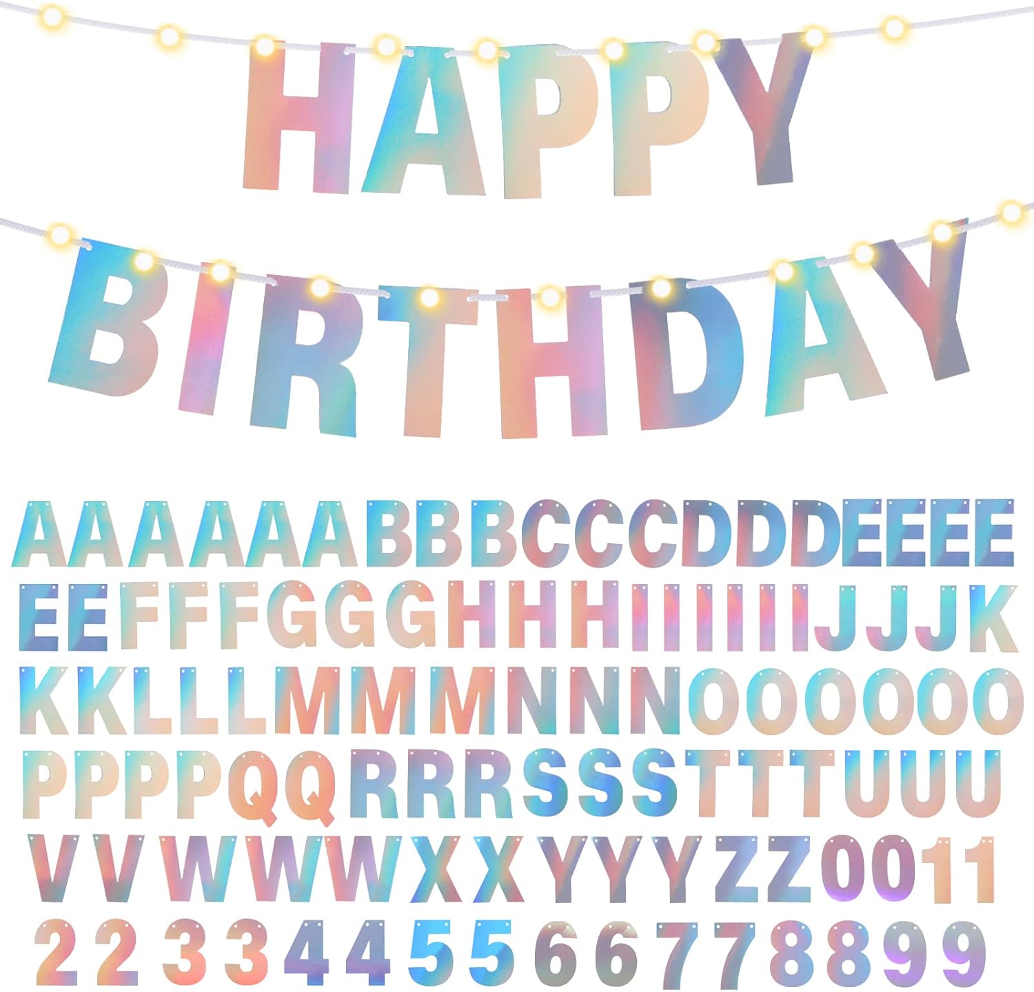TaoBary 112 Pcs DIY Letter Custom Banner Glitter Customizable Banner Kit Including 107 Letters and Numbers 3 Rope for Valentine Birthday Party(Holographic)