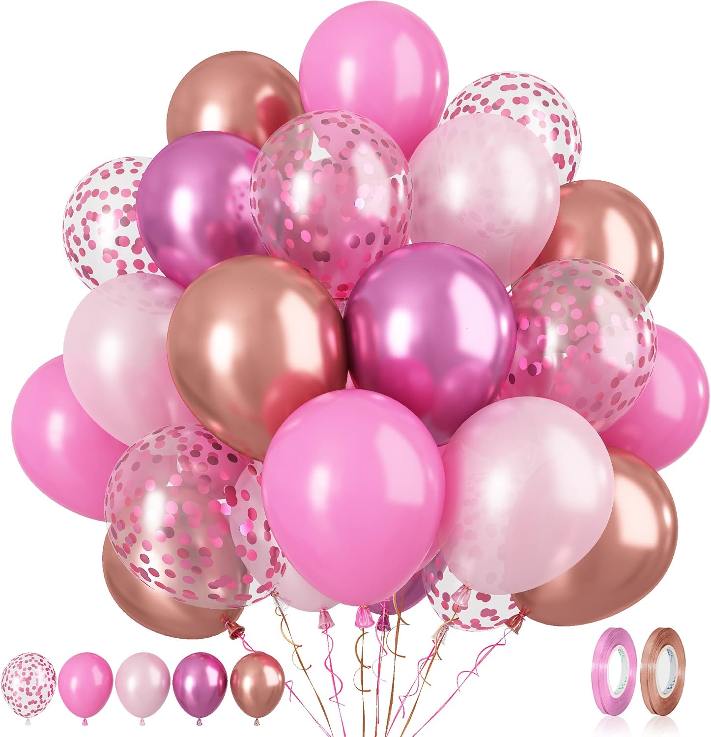 • Includes 60pcs 12 inch pink confetti balloons in metallic red, matte pink, rose gold, pastel pink and pink confetti colors